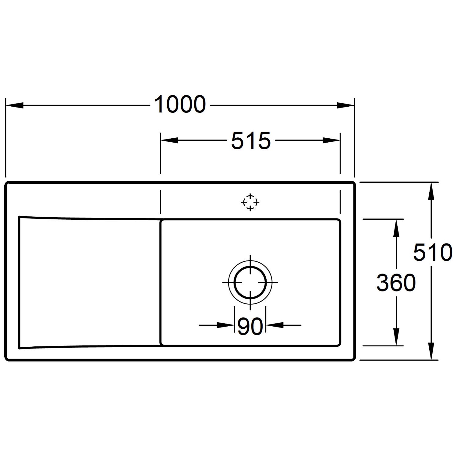 Villeroy & Boch Subway Style 60 Einbauspüle, Ablaufgarnitur mit Handbetätigung, Becken rechts