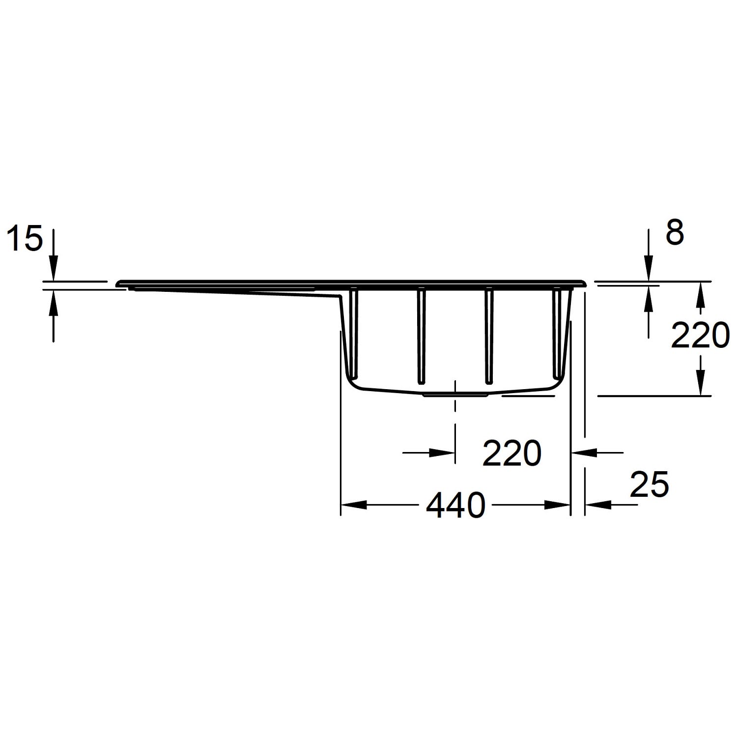 - Aussparrung der Arbeitsplatte B: 87 T: 48 cm