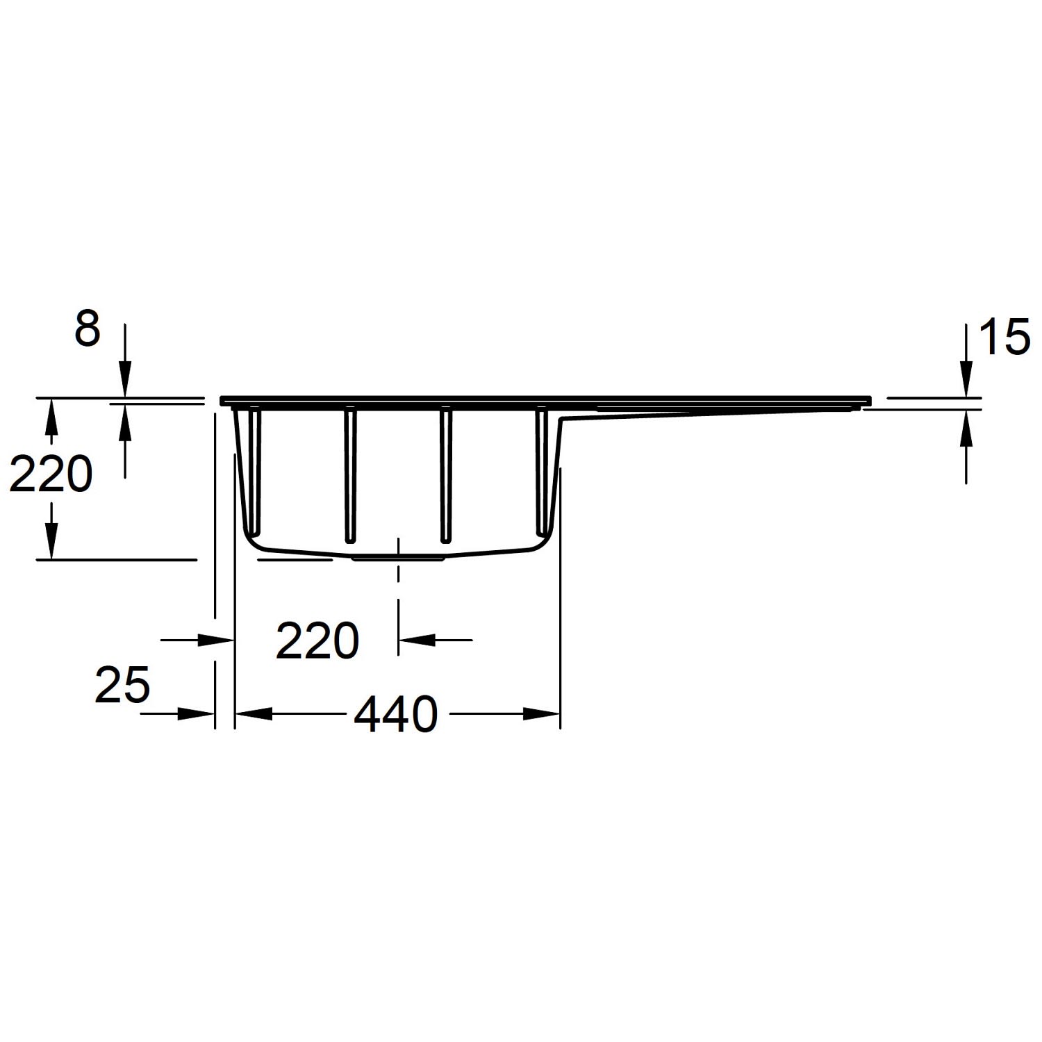 - minimale Stärke der Arbeitsplatte: mind. 3 cm
