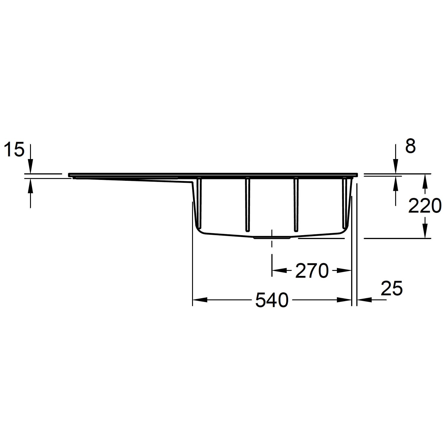 Villeroy & Boch Subway Style 60 FLAT flächenbündige Spüle, Ablaufgarnitur mit Handbetätigung, Becken rechts