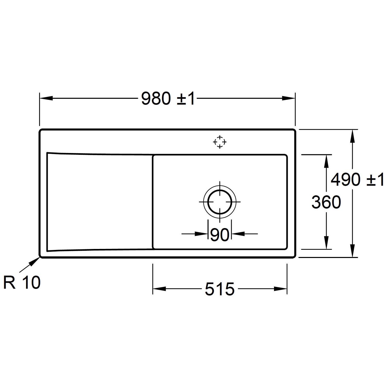 Villeroy & Boch Subway Style 60 FLAT flächenbündige Spüle, Ablaufgarnitur mit Handbetätigung, Becken rechts