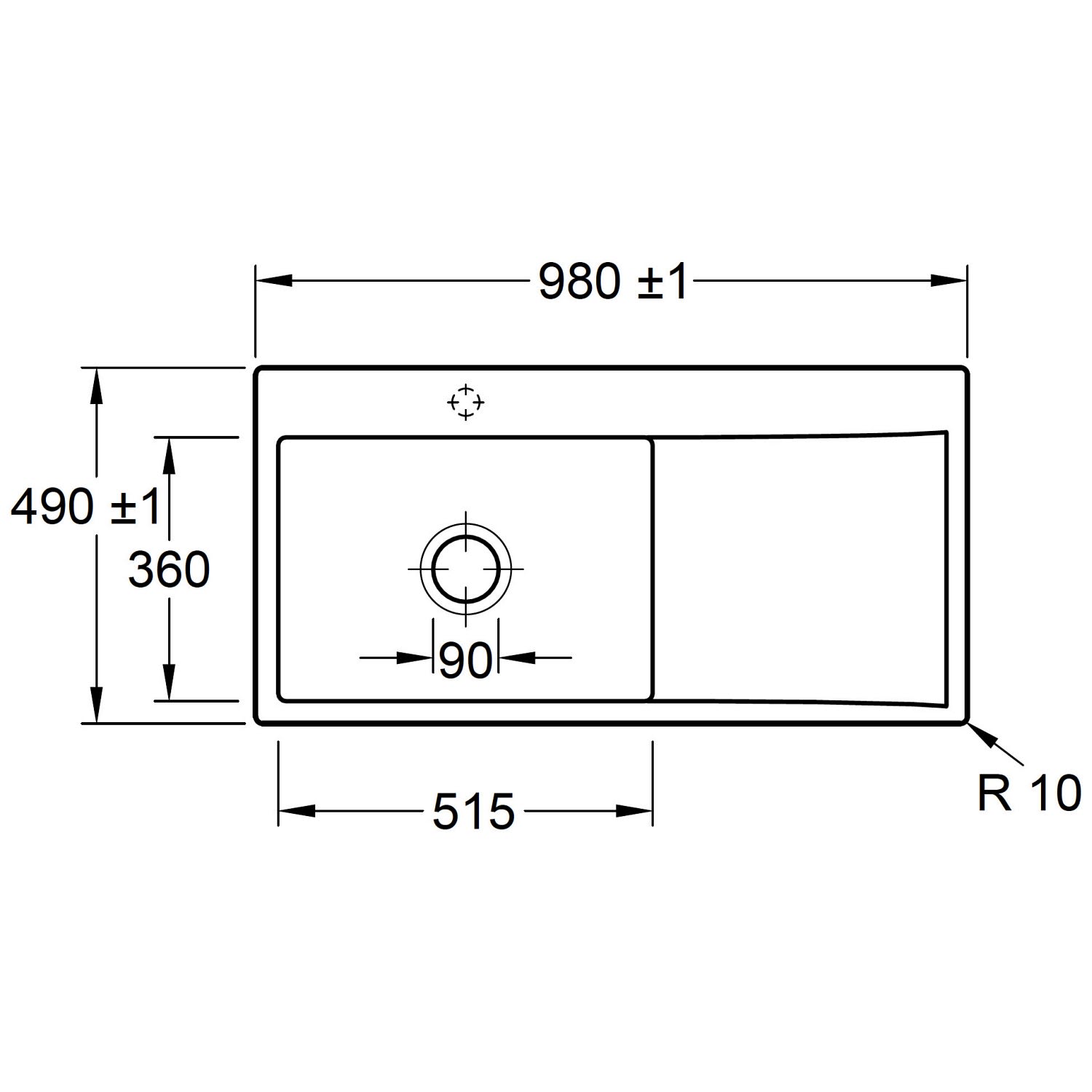 Villeroy & Boch Subway Style 60 FLAT flächenbündige Spüle, Ablaufgarnitur mit Handbetätigung, Becken links