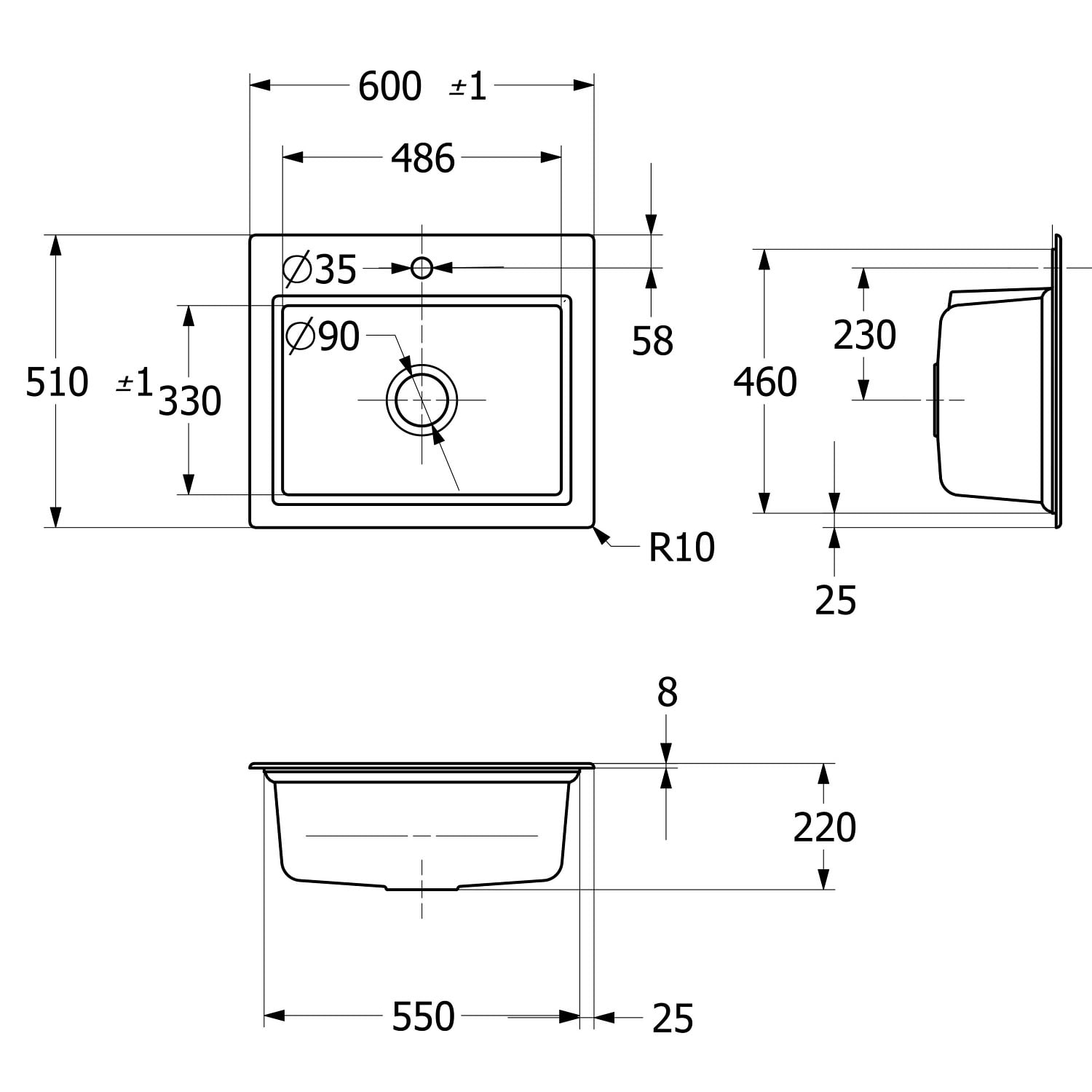 - geeignet für klassischen, aufliegenden Einbau von oben in die Arbeitsplatte