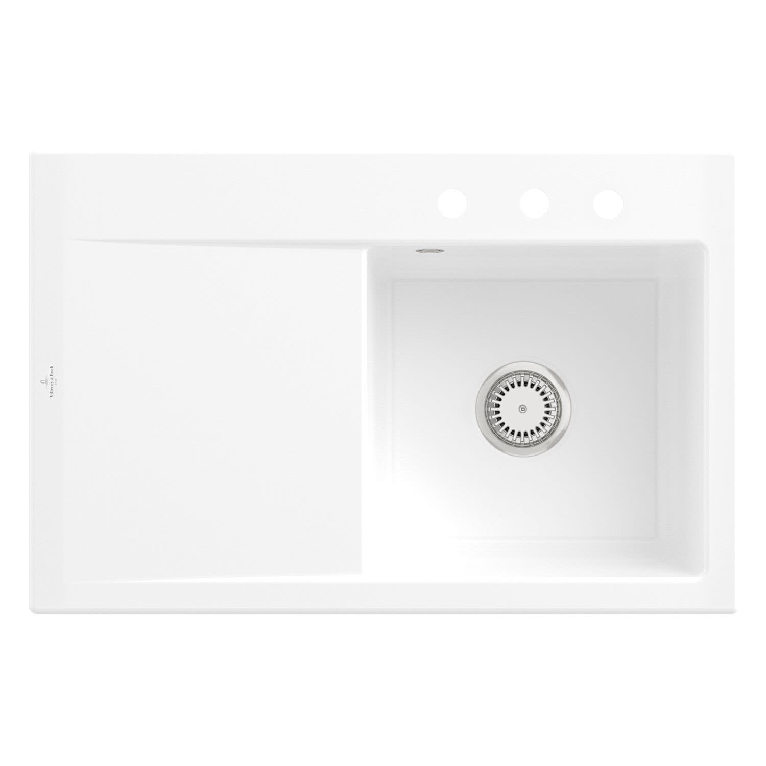 Eine Küchenspüle für alle Fälle bietet Villeroy & Boch mit der Subway Style. Sie punktet mit einem modernen, klaren Design. Praktisch ist die geneigte Abtropffläche, von der überschüssiges Wasser nassen Geschirrs direkt in das Spülbecken fließt – das macht Abwaschen kinderleicht. Außerdem können auf der hitzebeständigen Fläche heiße Töpfe abgestellt werden. Genügend Platz für Spülmittel oder andere Küchenutensilien bietet die breite Ablagefläche. Und auch in Sachen Hygiene punktet die Spüle: Denn dank der schmutzabweisenden Oberfläche perlen Flüssigkeiten und Schmutz einfach ab. So geht die Reinigung ganz einfach von der Hand. Die hochwertige Keramikspüle zeichnet sich zudem durch eine zuverlässige Kratz-, Schlag- und Stoßbeständigkeit aus. Auch können weder haushaltsübliche Säuren noch Hitze oder Kälte dem strapazierfähigen Material etwas anhaben. Die Ablaufgarnitur mit Excenterbetätigung ist inklusive.