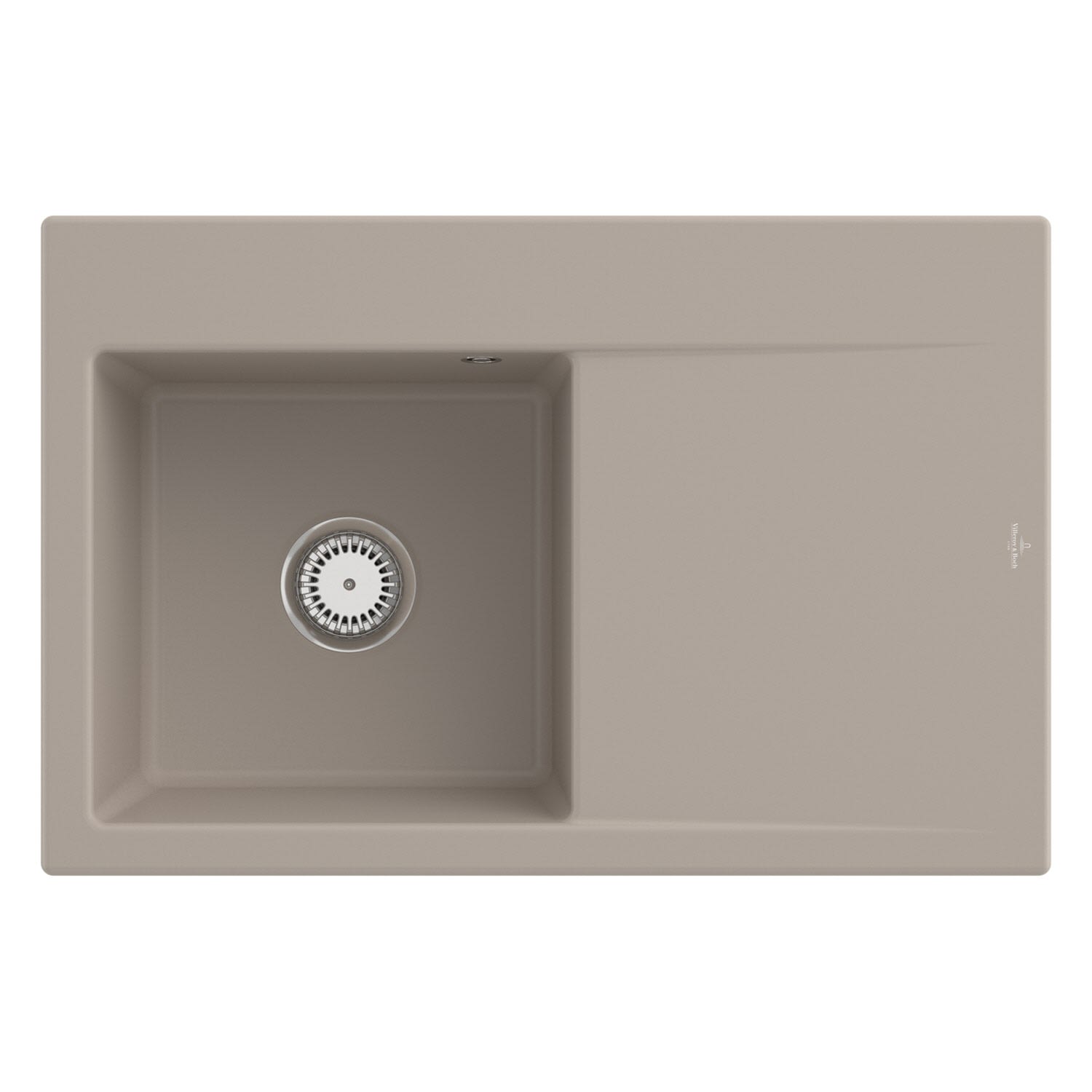 Eine Küchenspüle für alle Fälle bietet Villeroy & Boch mit der Subway Style. Sie punktet mit einem modernen, klaren Design. Praktisch ist die geneigte Abtropffläche, von der überschüssiges Wasser nassen Geschirrs direkt in das Spülbecken fließt – das macht Abwaschen kinderleicht. Außerdem können auf der hitzebeständigen Fläche heiße Töpfe abgestellt werden. Genügend Platz für Spülmittel oder andere Küchenutensilien bietet die breite Ablagefläche. Und auch in Sachen Hygiene punktet die Spüle: Denn dank der schmutzabweisenden Oberfläche perlen Flüssigkeiten und Schmutz einfach ab. So geht die Reinigung ganz einfach von der Hand. Die hochwertige Keramikspüle zeichnet sich zudem durch eine zuverlässige Kratz-, Schlag- und Stoßbeständigkeit aus. Auch können weder haushaltsübliche Säuren noch Hitze oder Kälte dem strapazierfähigen Material etwas anhaben. Die Ablaufgarnitur mit Excenterbetätigung ist inklusive.