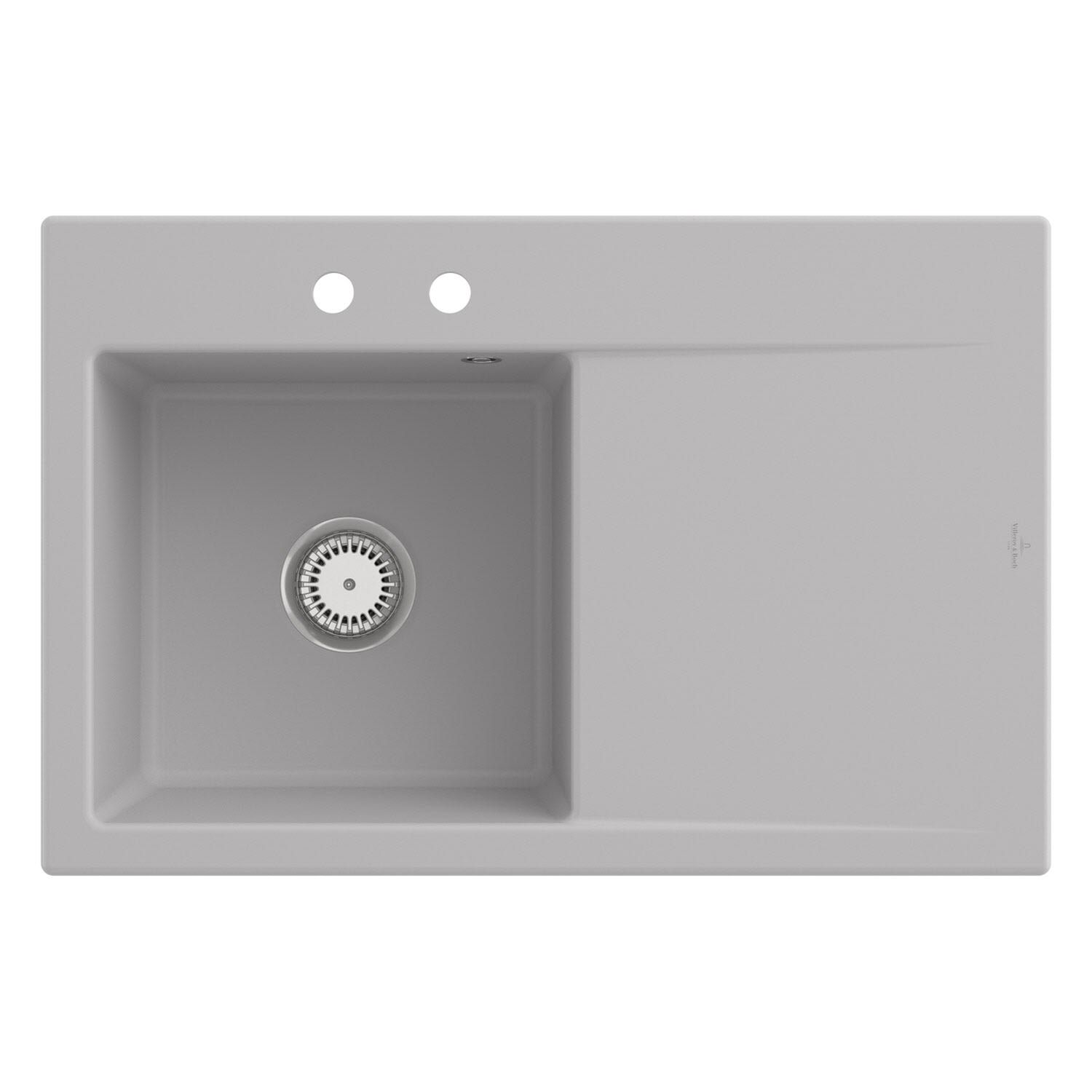Eine Küchenspüle für alle Fälle bietet Villeroy & Boch mit der Subway Style. Sie punktet mit einem modernen, klaren Design. Praktisch ist die geneigte Abtropffläche, von der überschüssiges Wasser nassen Geschirrs direkt in das Spülbecken fließt – das macht Abwaschen kinderleicht. Außerdem können auf der hitzebeständigen Fläche heiße Töpfe abgestellt werden. Genügend Platz für Spülmittel oder andere Küchenutensilien bietet die breite Ablagefläche. Und auch in Sachen Hygiene punktet die Spüle: Denn dank der schmutzabweisenden Oberfläche perlen Flüssigkeiten und Schmutz einfach ab. So geht die Reinigung ganz einfach von der Hand. Die hochwertige Keramikspüle zeichnet sich zudem durch eine zuverlässige Kratz-, Schlag- und Stoßbeständigkeit aus. Auch können weder haushaltsübliche Säuren noch Hitze oder Kälte dem strapazierfähigen Material etwas anhaben. Die Ablaufgarnitur mit Excenterbetätigung ist inklusive.