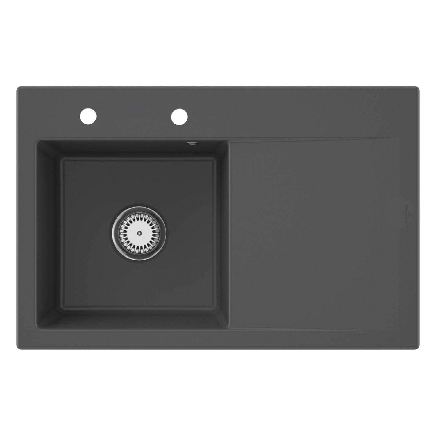Eine Küchenspüle für alle Fälle bietet Villeroy & Boch mit der Subway Style. Sie punktet mit einem modernen, klaren Design. Praktisch ist die geneigte Abtropffläche, von der überschüssiges Wasser nassen Geschirrs direkt in das Spülbecken fließt – das macht Abwaschen kinderleicht. Außerdem können auf der hitzebeständigen Fläche heiße Töpfe abgestellt werden. Genügend Platz für Spülmittel oder andere Küchenutensilien bietet die breite Ablagefläche. Und auch in Sachen Hygiene punktet die Spüle: Denn dank der schmutzabweisenden Oberfläche perlen Flüssigkeiten und Schmutz einfach ab. So geht die Reinigung ganz einfach von der Hand. Die hochwertige Keramikspüle zeichnet sich zudem durch eine zuverlässige Kratz-, Schlag- und Stoßbeständigkeit aus. Auch können weder haushaltsübliche Säuren noch Hitze oder Kälte dem strapazierfähigen Material etwas anhaben. Die Ablaufgarnitur mit Excenterbetätigung ist inklusive.