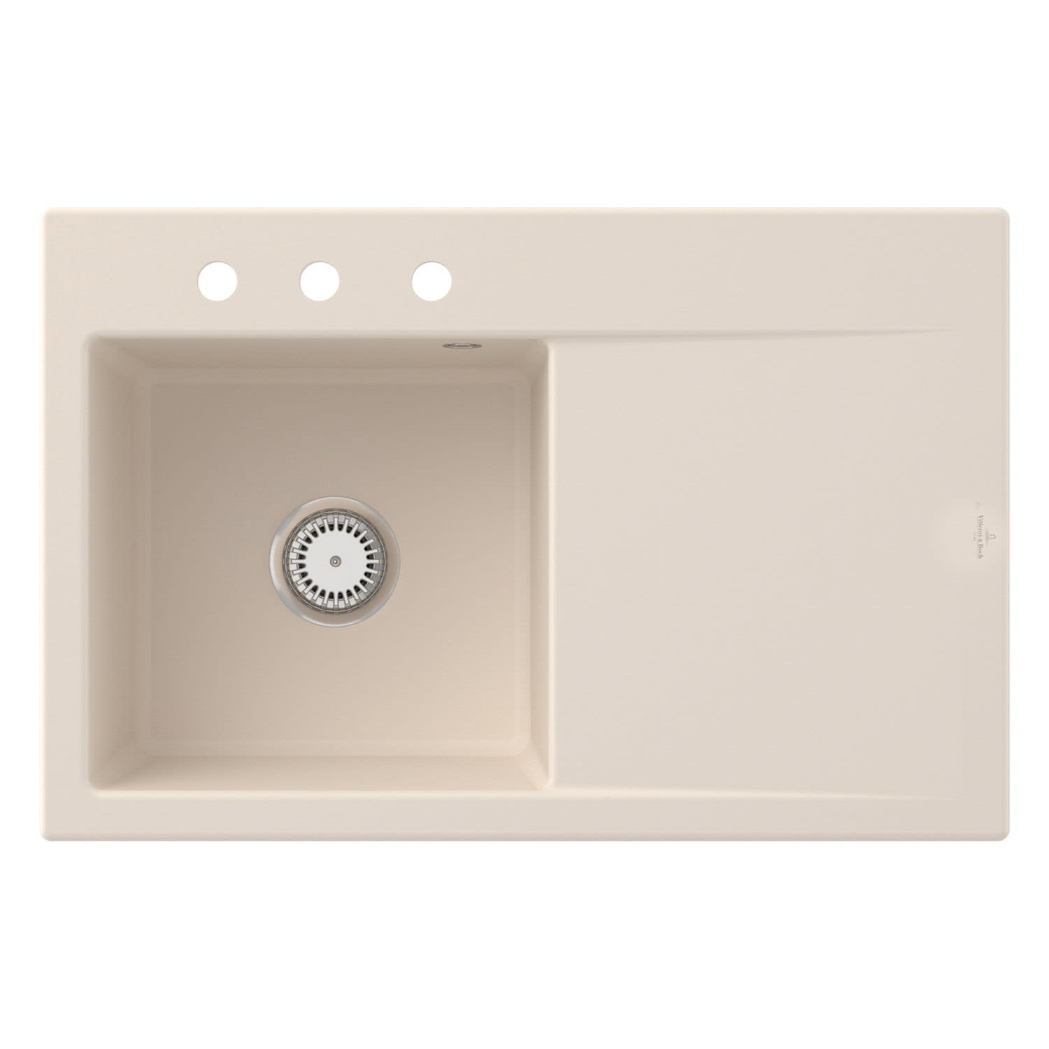 Eine Küchenspüle für alle Fälle bietet Villeroy & Boch mit der Subway Style. Sie punktet mit einem modernen, klaren Design. Praktisch ist die geneigte Abtropffläche, von der überschüssiges Wasser nassen Geschirrs direkt in das Spülbecken fließt – das macht Abwaschen kinderleicht. Außerdem können auf der hitzebeständigen Fläche heiße Töpfe abgestellt werden. Genügend Platz für Spülmittel oder andere Küchenutensilien bietet die breite Ablagefläche. Und auch in Sachen Hygiene punktet die Spüle: Denn dank der schmutzabweisenden Oberfläche perlen Flüssigkeiten und Schmutz einfach ab. So geht die Reinigung ganz einfach von der Hand. Die hochwertige Keramikspüle zeichnet sich zudem durch eine zuverlässige Kratz-, Schlag- und Stoßbeständigkeit aus. Auch können weder haushaltsübliche Säuren noch Hitze oder Kälte dem strapazierfähigen Material etwas anhaben. Die Ablaufgarnitur mit Handbetätigung ist inklusive.
