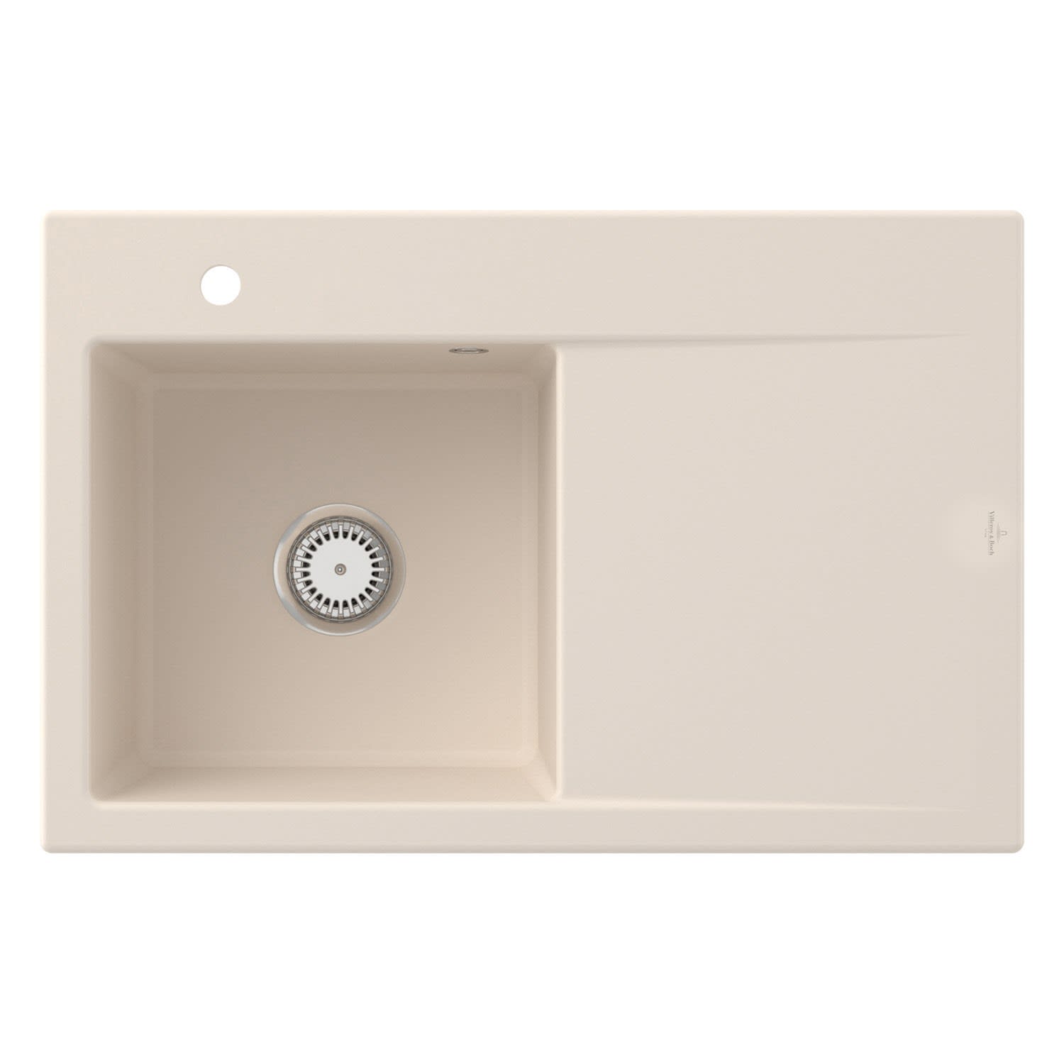 Eine Küchenspüle für alle Fälle bietet Villeroy & Boch mit der Subway Style. Sie punktet mit einem modernen, klaren Design. Praktisch ist die geneigte Abtropffläche, von der überschüssiges Wasser nassen Geschirrs direkt in das Spülbecken fließt – das macht Abwaschen kinderleicht. Außerdem können auf der hitzebeständigen Fläche heiße Töpfe abgestellt werden. Genügend Platz für Spülmittel oder andere Küchenutensilien bietet die breite Ablagefläche. Und auch in Sachen Hygiene punktet die Spüle: Denn dank der schmutzabweisenden Oberfläche perlen Flüssigkeiten und Schmutz einfach ab. So geht die Reinigung ganz einfach von der Hand. Die hochwertige Keramikspüle zeichnet sich zudem durch eine zuverlässige Kratz-, Schlag- und Stoßbeständigkeit aus. Auch können weder haushaltsübliche Säuren noch Hitze oder Kälte dem strapazierfähigen Material etwas anhaben. Die Ablaufgarnitur mit Excenterbetätigung ist inklusive.