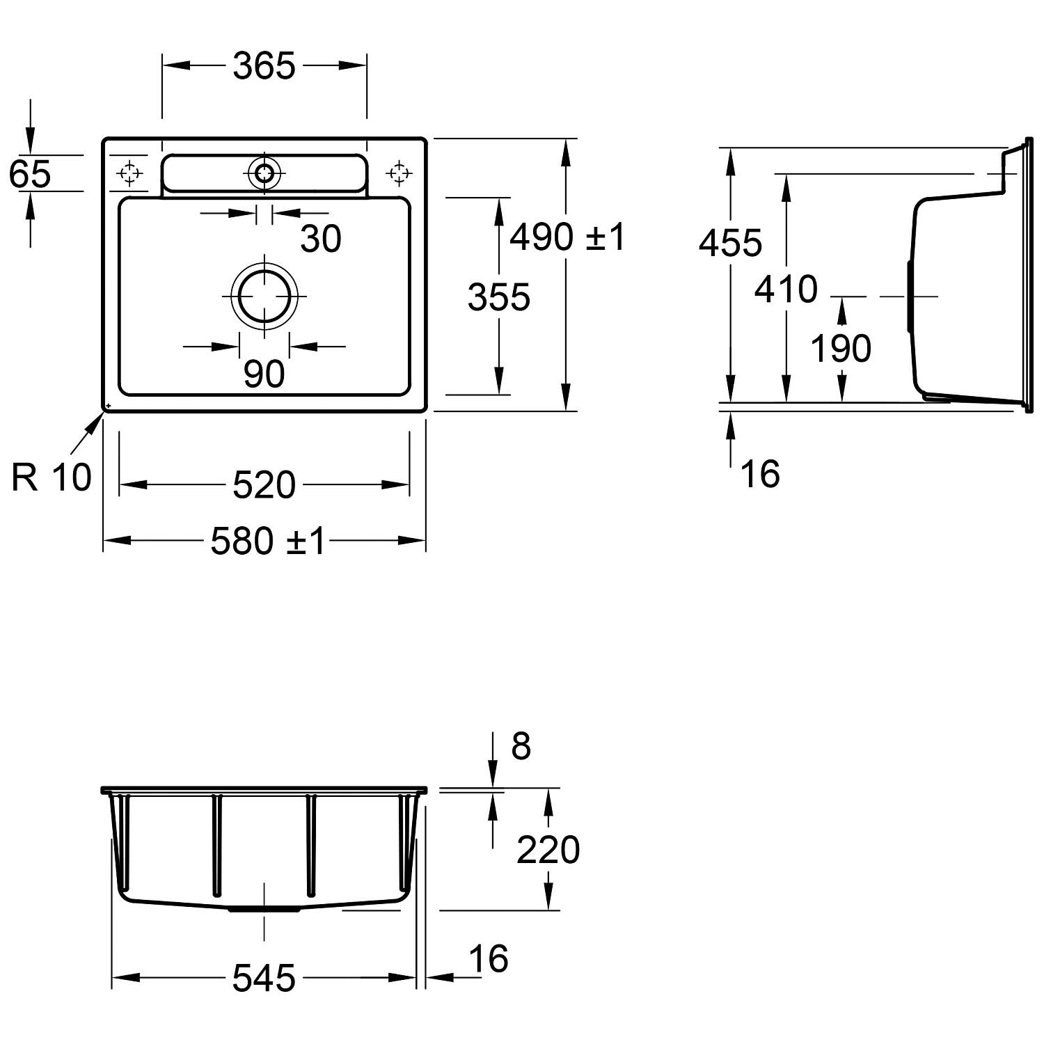 Villeroy & Boch Siluet 60 S Flat Einbauspüle, Ablaufgarnitur mit Excenterbetätigung, mit HL1 und HL2