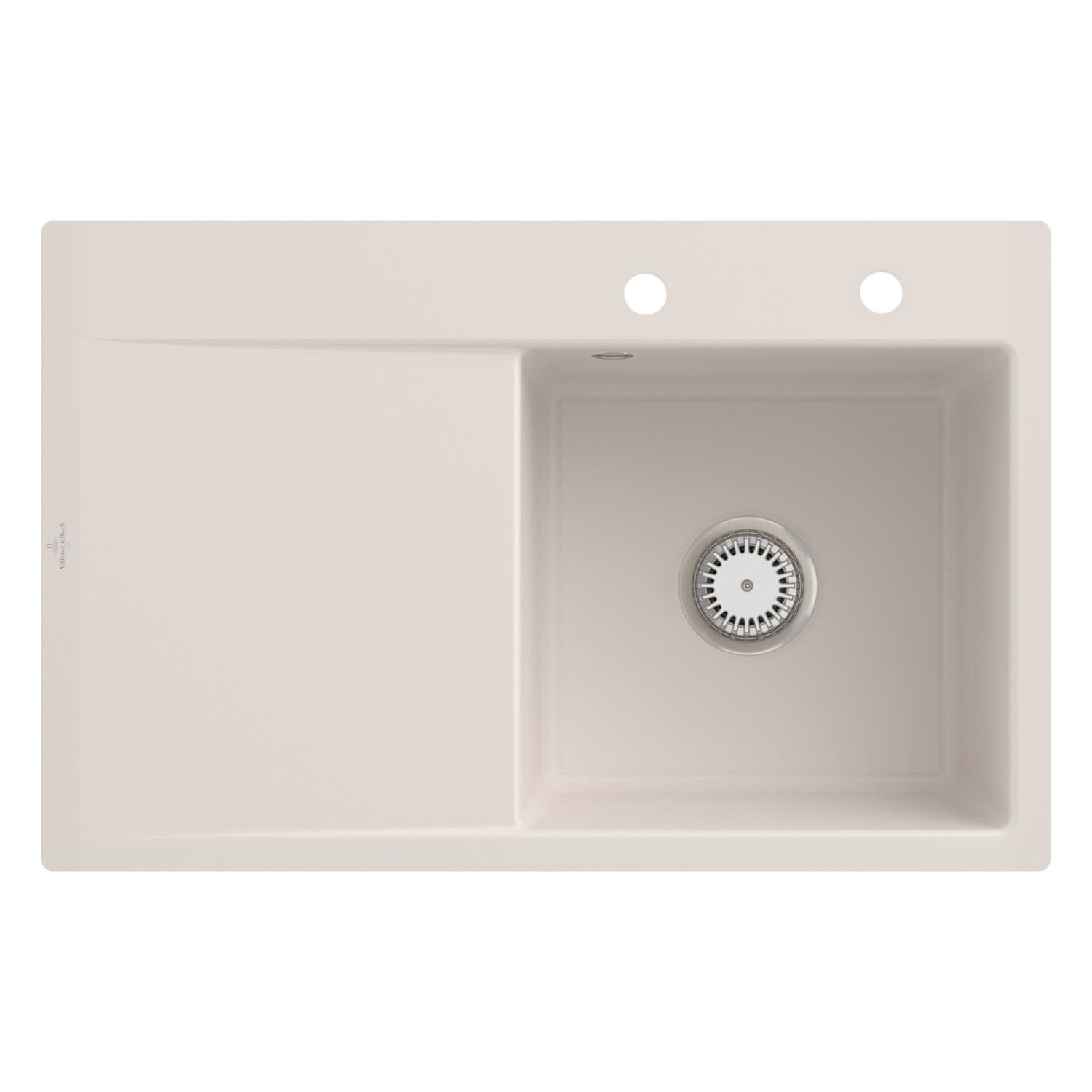 Eine Küchenspüle für alle Fälle bietet Villeroy & Boch mit der Subway Style. Sie punktet mit einem modernen, klaren Design. Praktisch ist die geneigte Abtropffläche, von der überschüssiges Wasser nassen Geschirrs direkt in das Spülbecken fließt – das macht Abwaschen kinderleicht. Außerdem können auf der hitzebeständigen Fläche heiße Töpfe abgestellt werden. Genügend Platz für Spülmittel oder andere Küchenutensilien bietet die breite Ablagefläche. Und auch in Sachen Hygiene punktet die Spüle: Denn dank der schmutzabweisenden Oberfläche perlen Flüssigkeiten und Schmutz einfach ab. So geht die Reinigung ganz einfach von der Hand. Die hochwertige Keramikspüle zeichnet sich zudem durch eine zuverlässige Kratz-, Schlag- und Stoßbeständigkeit aus. Auch können weder haushaltsübliche Säuren noch Hitze oder Kälte dem strapazierfähigen Material etwas anhaben. Die Ablaufgarnitur mit Handbetätigung ist inklusive.