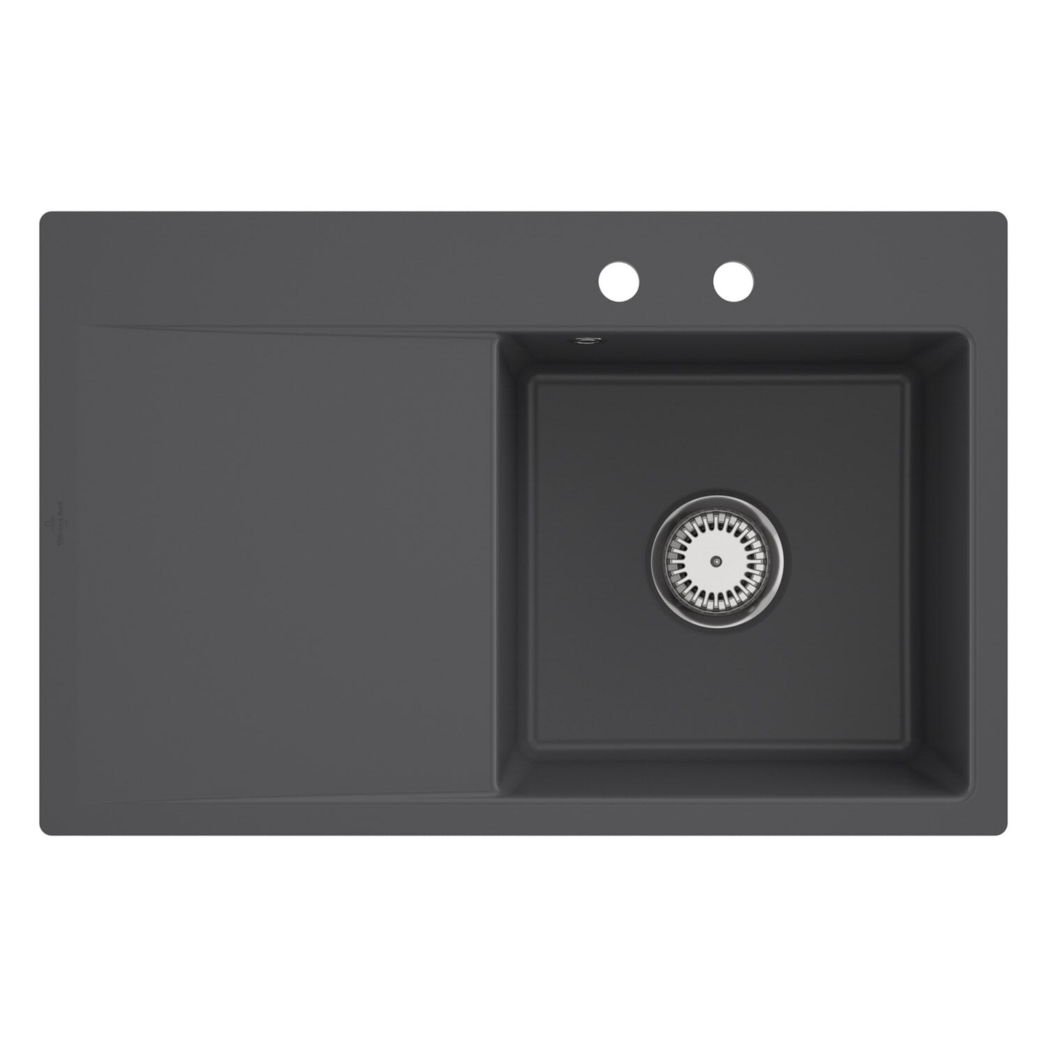 Eine Küchenspüle für alle Fälle bietet Villeroy & Boch mit der Subway Style. Sie punktet mit einem modernen, klaren Design. Praktisch ist die geneigte Abtropffläche, von der überschüssiges Wasser nassen Geschirrs direkt in das Spülbecken fließt – das macht Abwaschen kinderleicht. Außerdem können auf der hitzebeständigen Fläche heiße Töpfe abgestellt werden. Genügend Platz für Spülmittel oder andere Küchenutensilien bietet die breite Ablagefläche. Und auch in Sachen Hygiene punktet die Spüle: Denn dank der schmutzabweisenden Oberfläche perlen Flüssigkeiten und Schmutz einfach ab. So geht die Reinigung ganz einfach von der Hand. Die hochwertige Keramikspüle zeichnet sich zudem durch eine zuverlässige Kratz-, Schlag- und Stoßbeständigkeit aus. Auch können weder haushaltsübliche Säuren noch Hitze oder Kälte dem strapazierfähigen Material etwas anhaben. Die Ablaufgarnitur mit Handbetätigung ist inklusive.