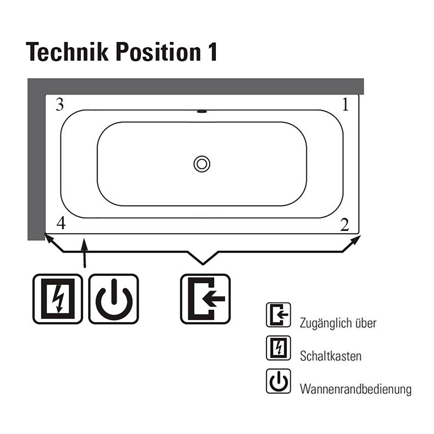 Villeroy & Boch Loop & Friends Square Duo Badewanne 170 x 75 cm, Airpool Entry, Technik Position 1