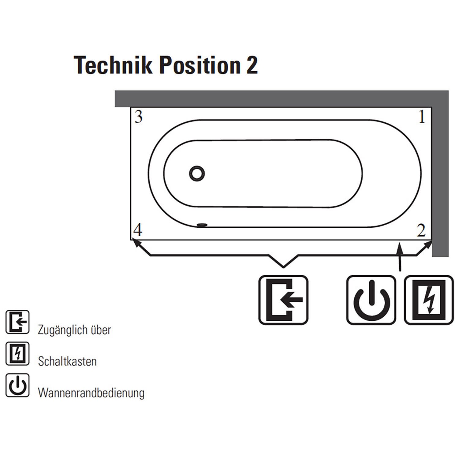 - wenn gewünscht, Wasserzulauf bitte separat bestellen. Bitte beachten Sie, dass der Wasserzulauf nicht nach Einbau der Wanne eingebaut werden kann.