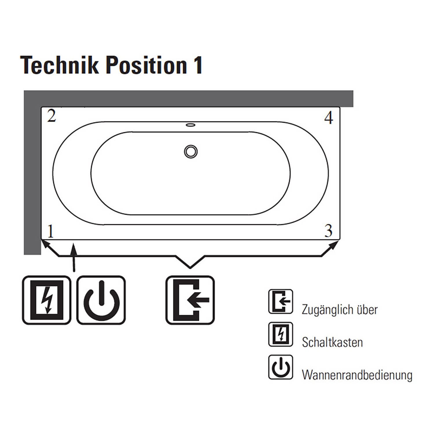 Villeroy & Boch Loop & Friends Oval Duo Badewanne 180 x 80 cm, Combipool Entry, Technik Position 1 inkl. Wasserzulauf