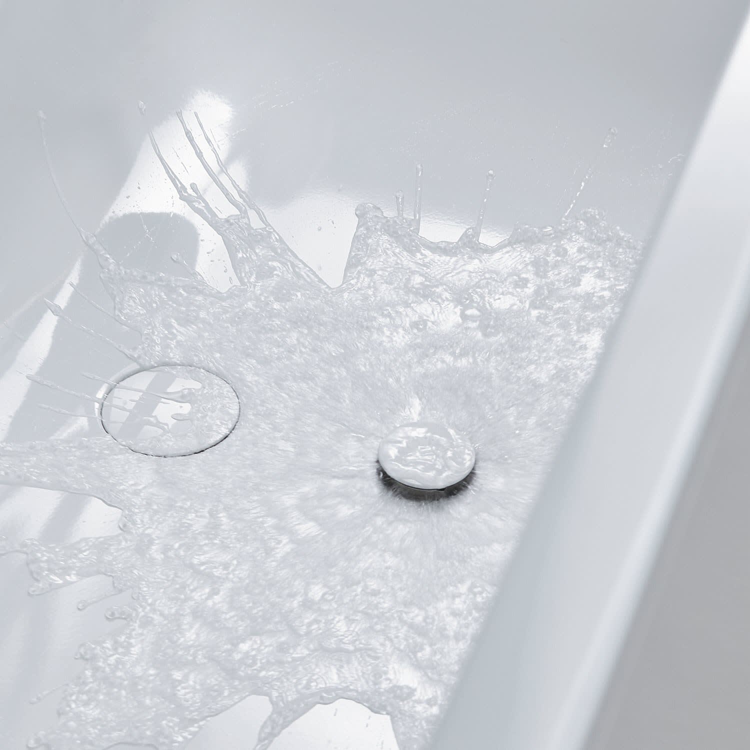 Der schmale Badewannenrand, die Überlauf-Form in länglichem Design sowie der in der Mitte bündig eingelassende Ablauf sorgen zudem für einen modernen Look. Öffnen und Schließen lässt sich das Ablaufventil ganz bequem durch sanften Druck. Als besonderes Highlight zählt das im Wannenboden versteckte Ventil, durch das die Badewanne von unten besonders leise und schnell mit Wasser befüllt wird! Ob alleine oder gemeinsam: Die Tiefe der Wanne und die komfortable Rückenlehne ermöglichen entspannte und wohltuende Momente.