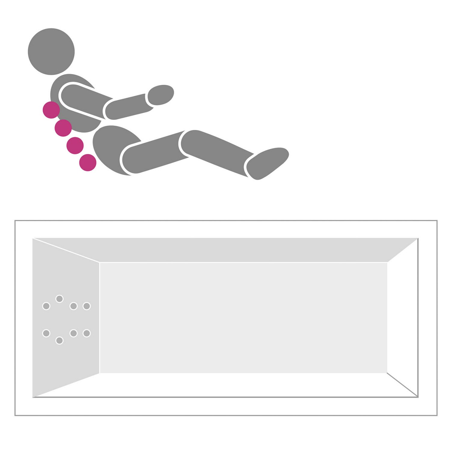 - 8 ergonomisch angeordnete Micro-Rückendüsen sorgen für eine angenehme Massage des unteren und oberen Rücken sowie den Schultern