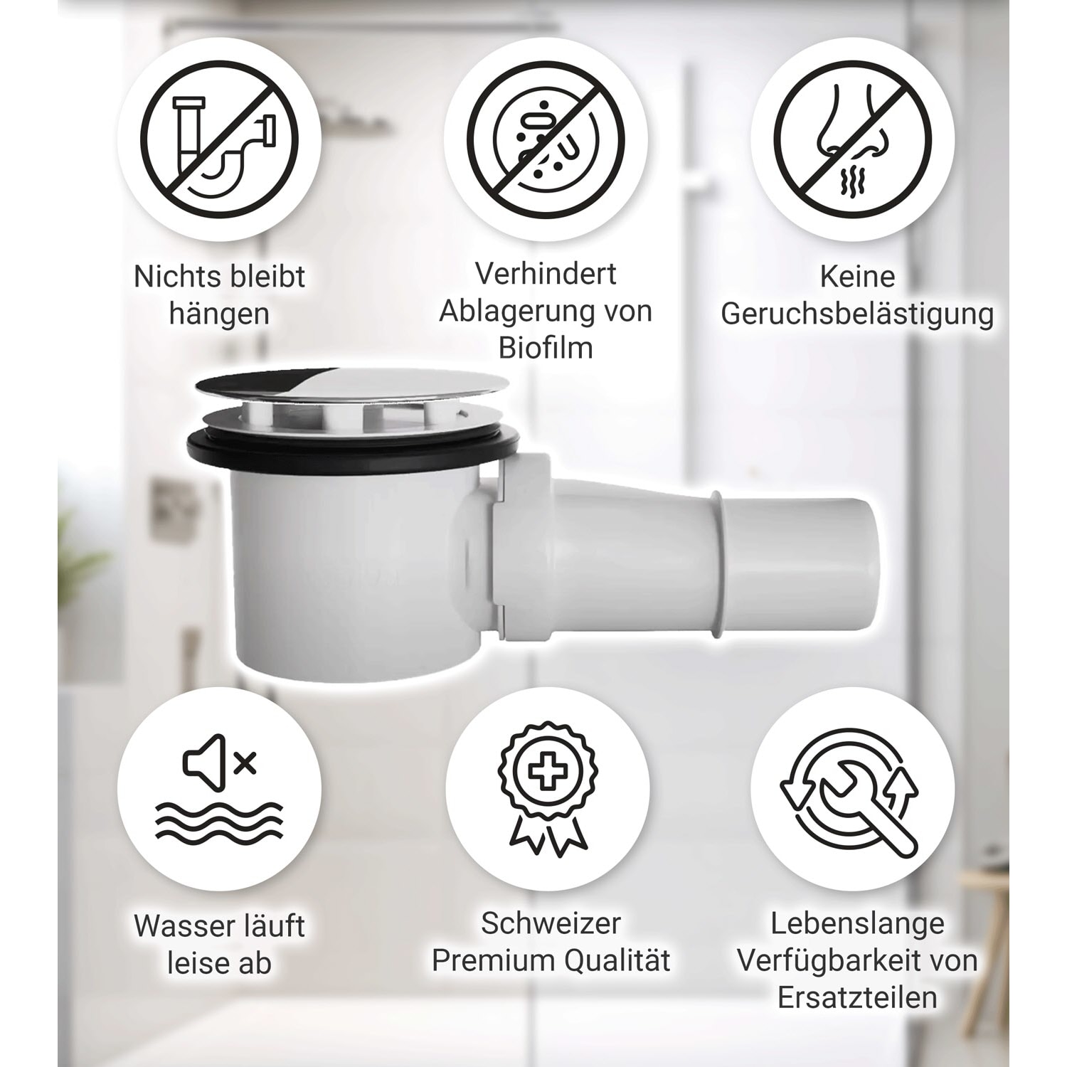 - Siphon für Entwässerung von Duschwanne mit Ablaufbohrung 9 cm