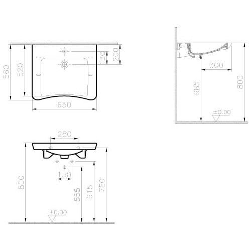VitrA Conforma Waschtisch 65 x 56/52 cm mit Hahnloch, mit Überlauf