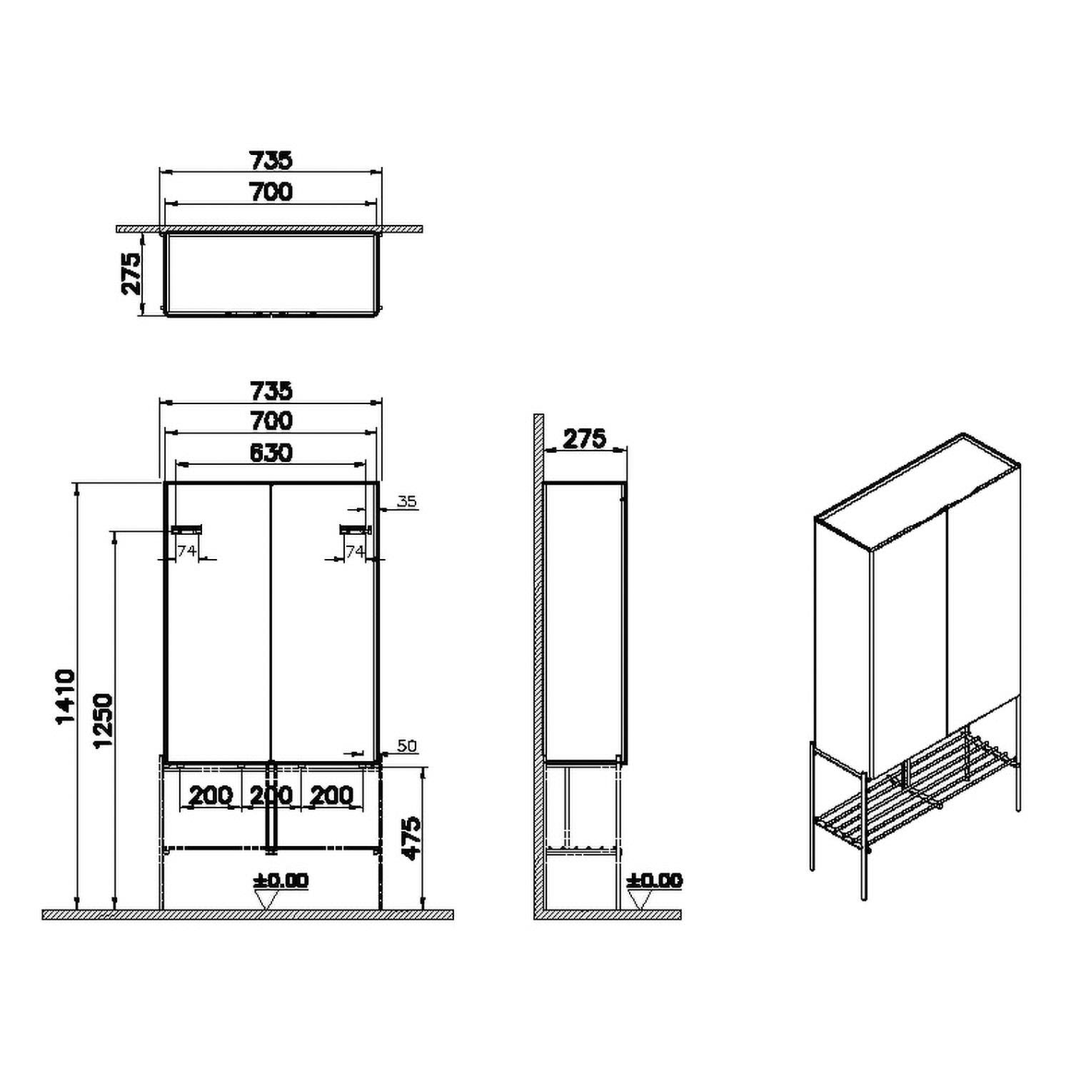 VitrA Equal Hochschrank 2 Türen mit Fußgestell und Ablagegitter