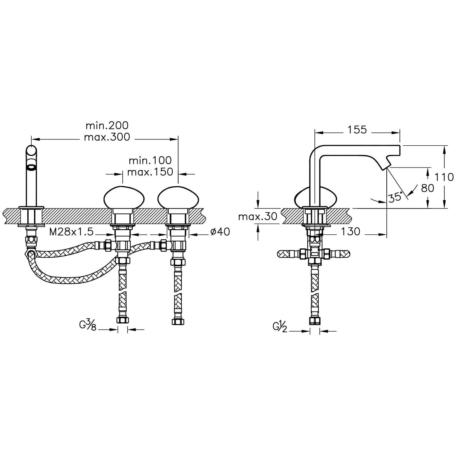 VitrA Istanbul Zweigriff-Waschtischarmatur, Dreilochmontage