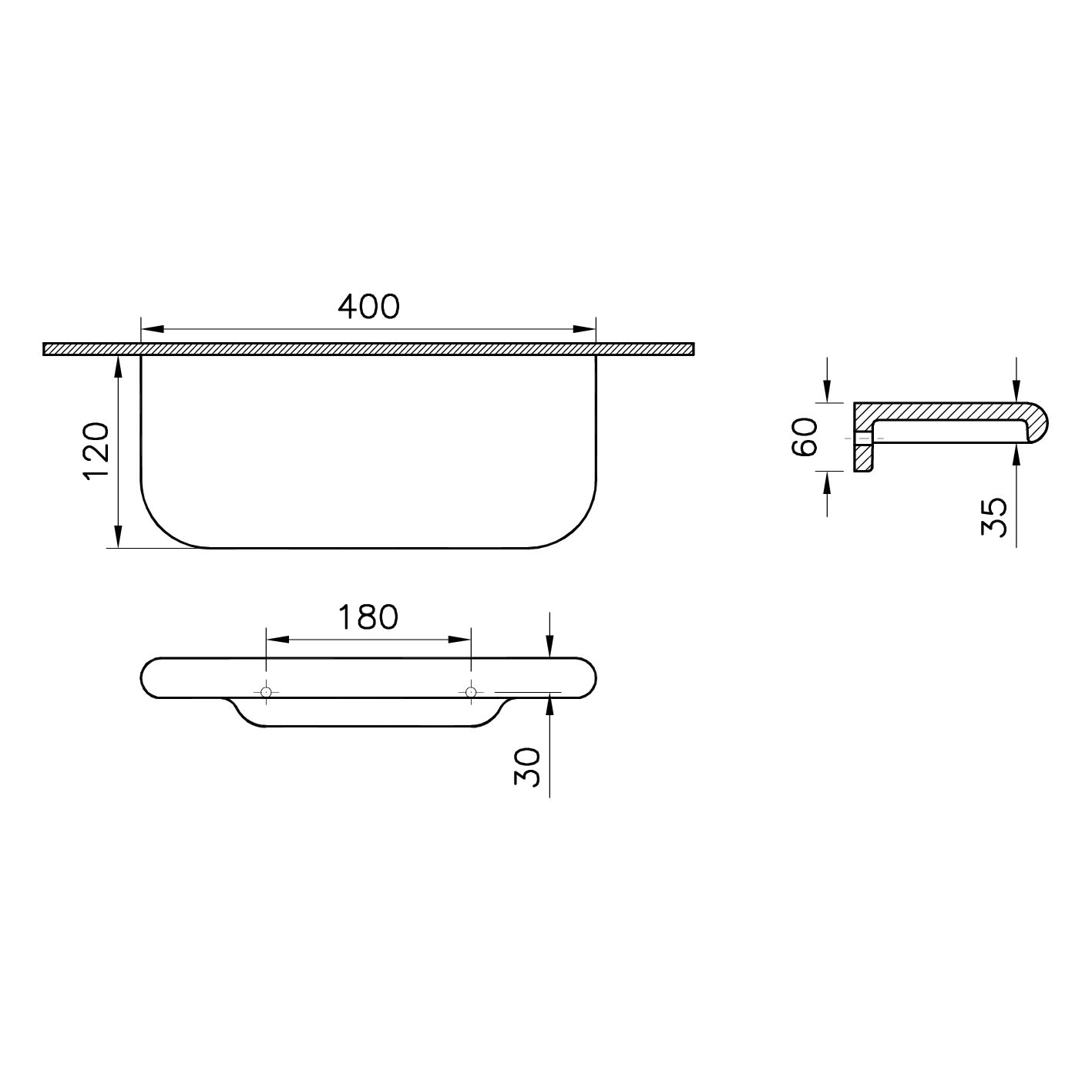B: 40 T: 12 H: 3 cm