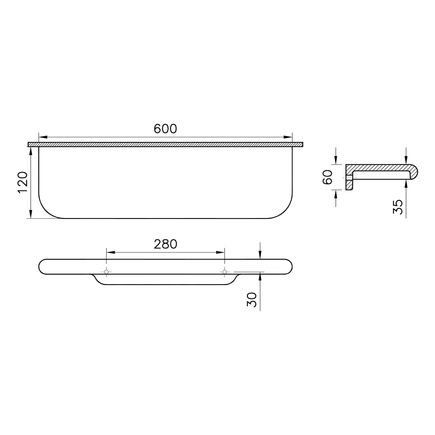 B: 60 T: 12 H: 3 cm