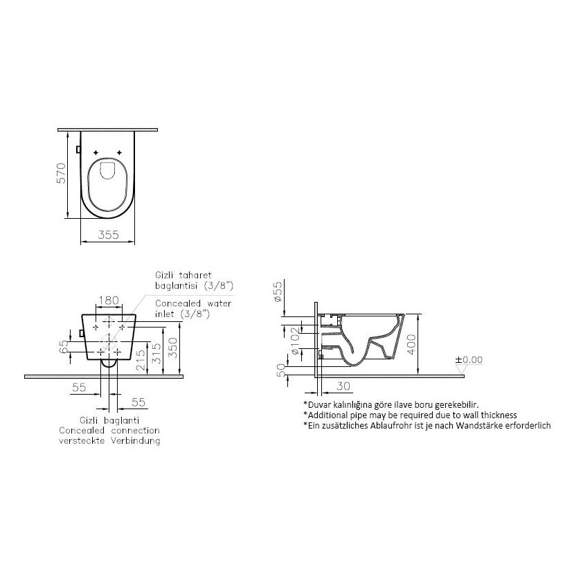 Der WC-Sitz, der Flexschlauch zur Bidetdüse Art. 310560 und das Anschlussset G1000 sind nicht im Lieferumfang enthalten und müssen separat bestellt werden.