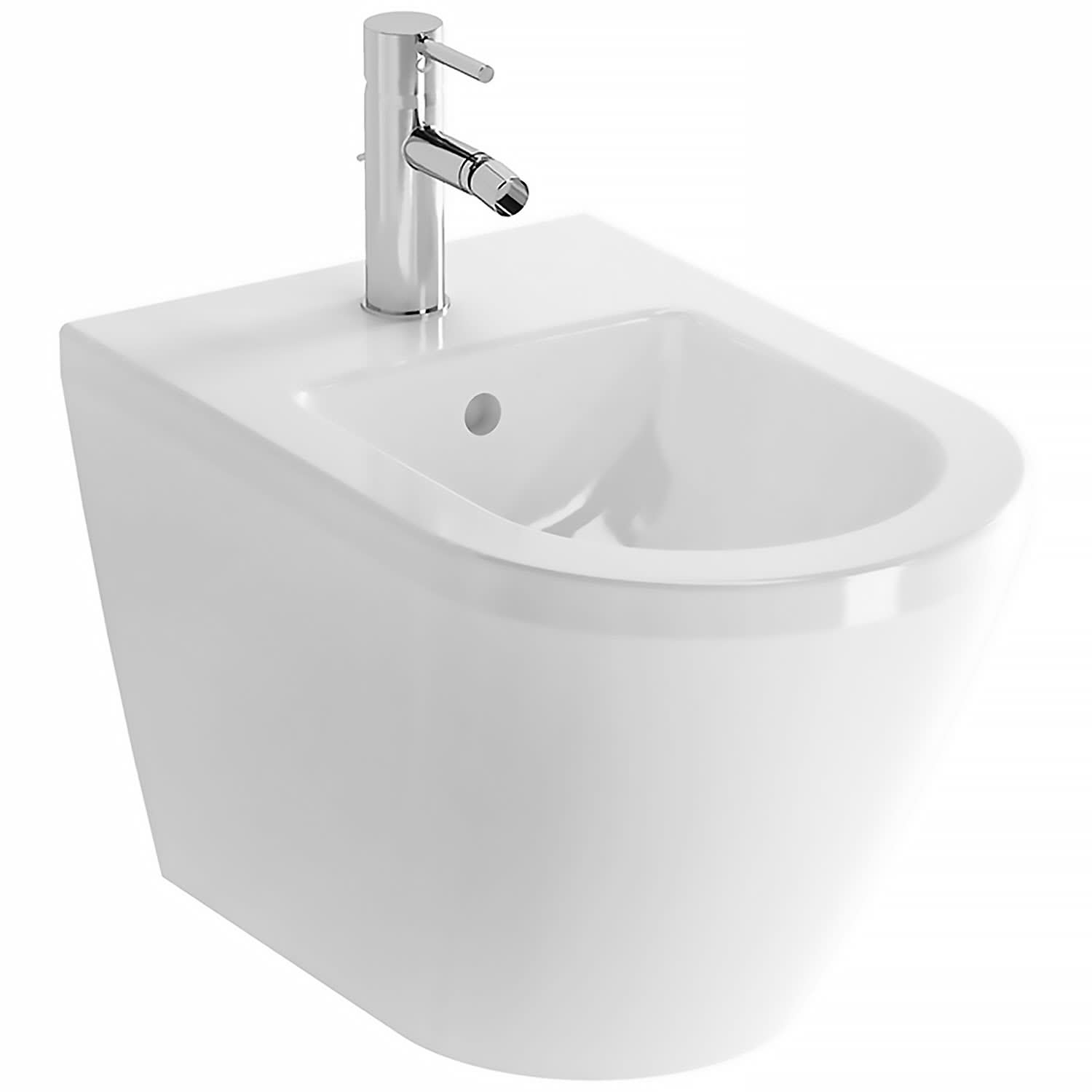 Wand-Bidet mit Überlaufloch, 1 Hahnloch mittig, ohne seitliche Löcher