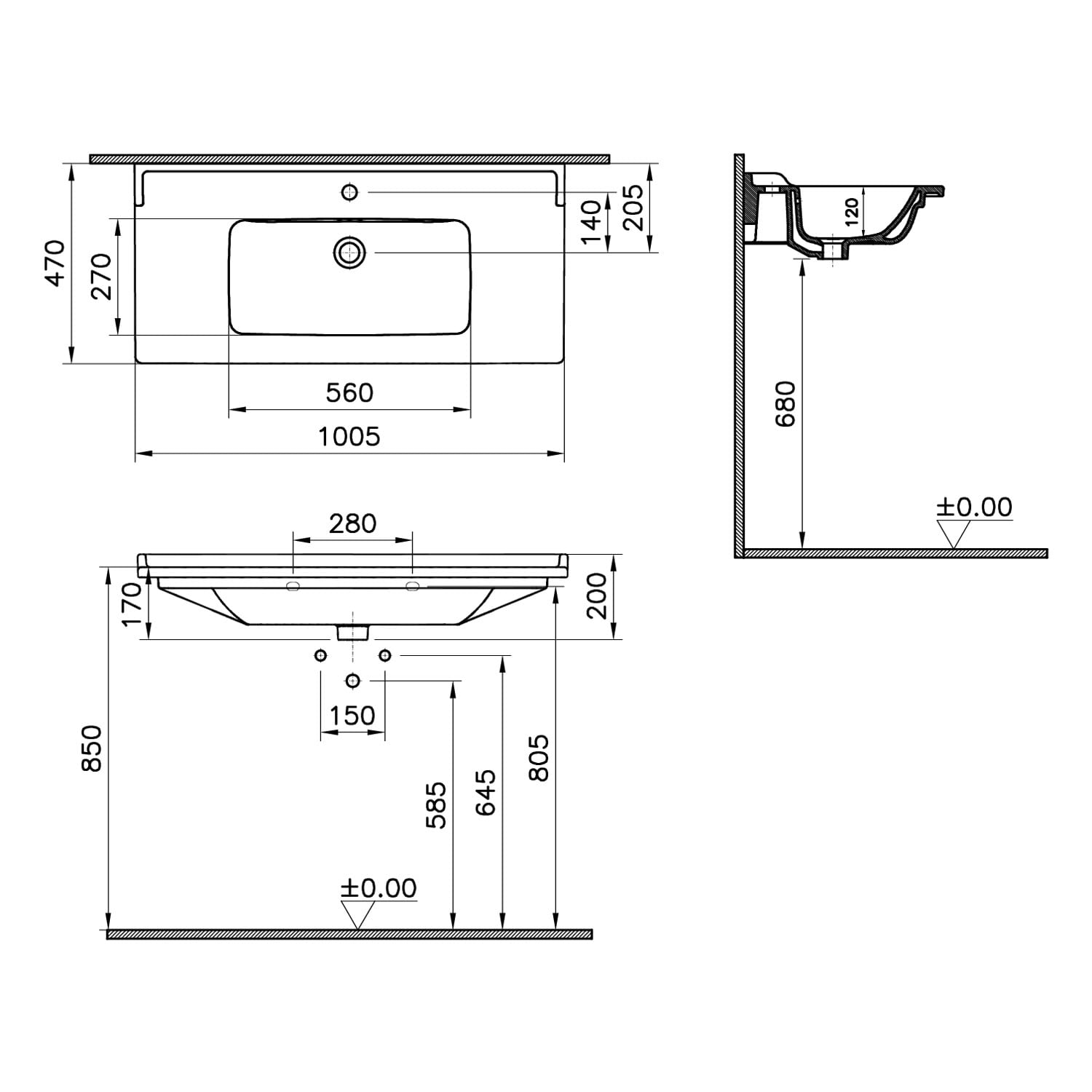 VitrA Integra Classic Möbelwaschtisch 100,5 cm mit 1 Hahnloch mittig