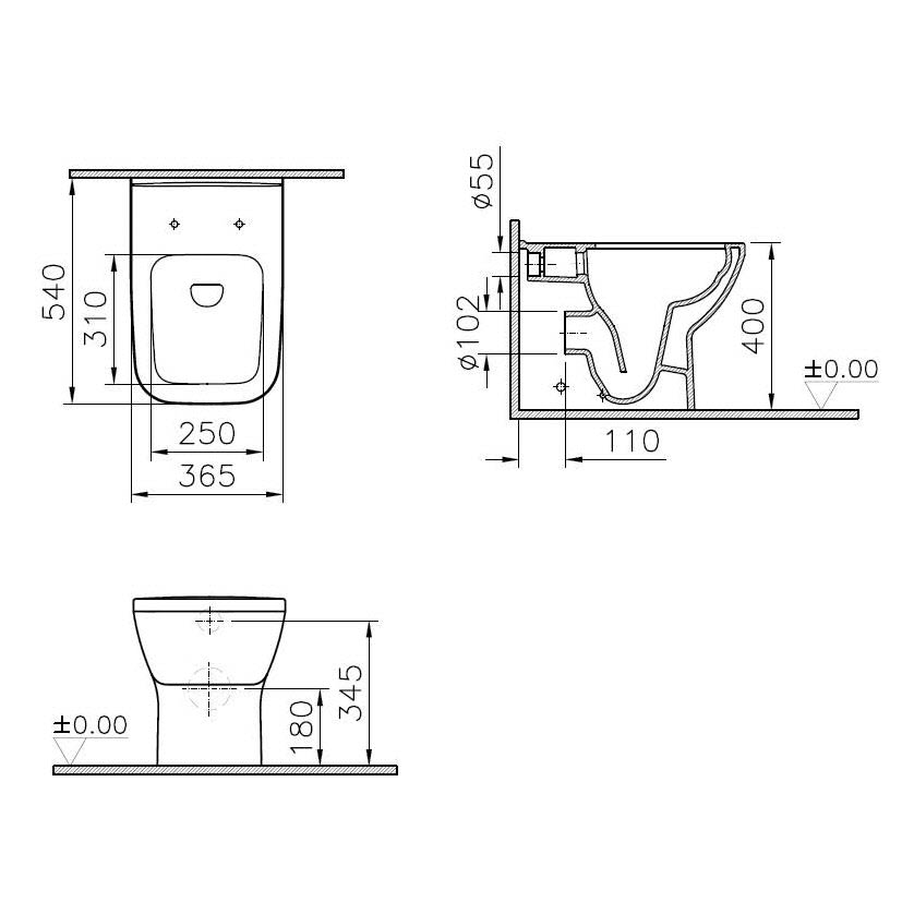 VitrA Integra Square Stand-WC Tiefspüler spülrandlos VitrA Flush 2.0