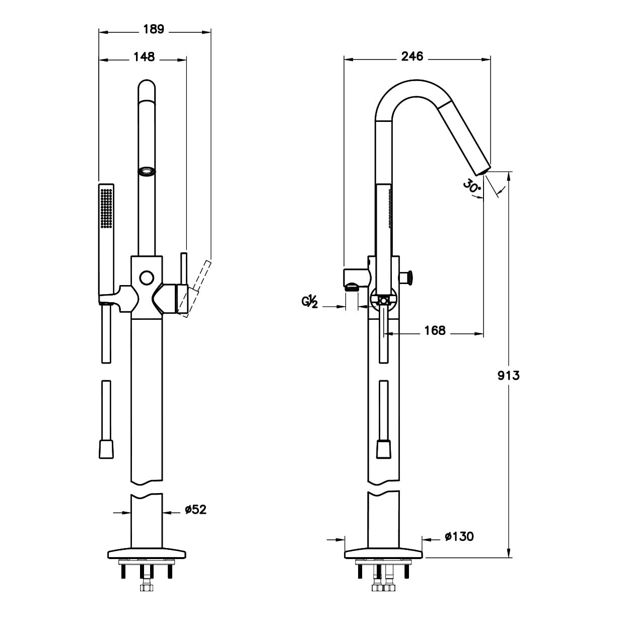 - Armatur ist nur für die Installation bei niedriger Estrichhöhe (ohne Fußbodenheizung) geeignet