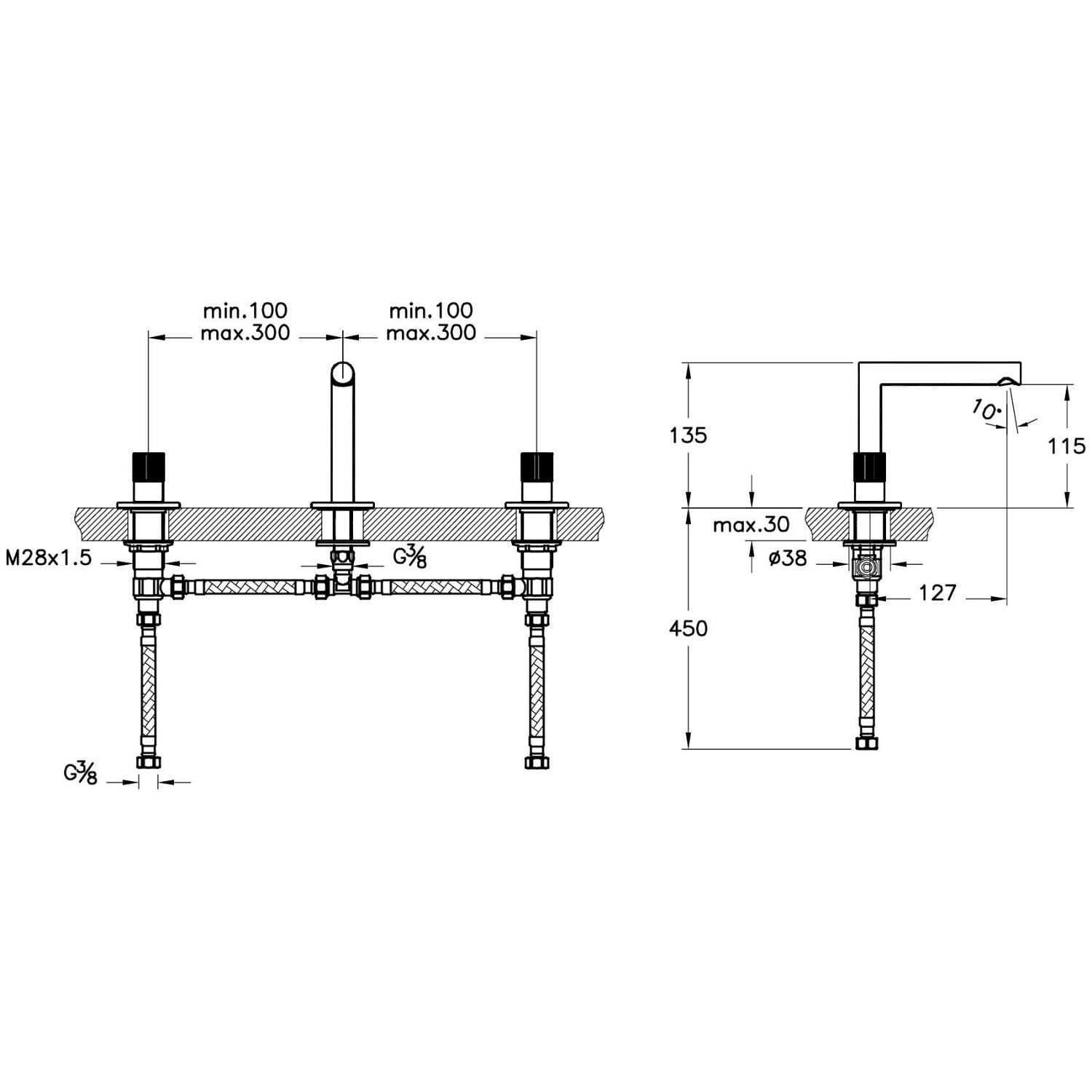 VitrA Origin Zweigriff-Waschtischarmatur 3-Loch ohne Ablaufgarnitur, Aufputz
