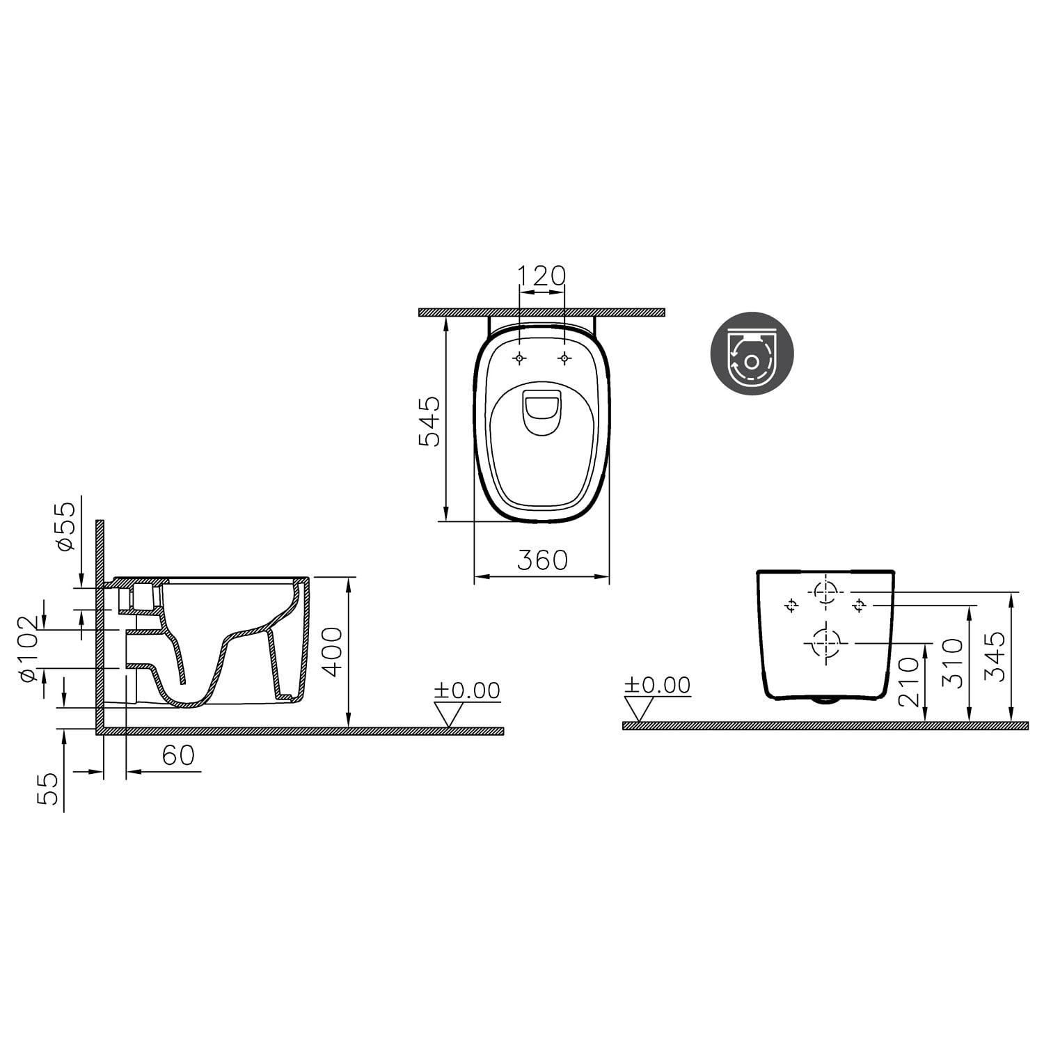 VitrA Plural Wand-WC VitrA Flush 2.0