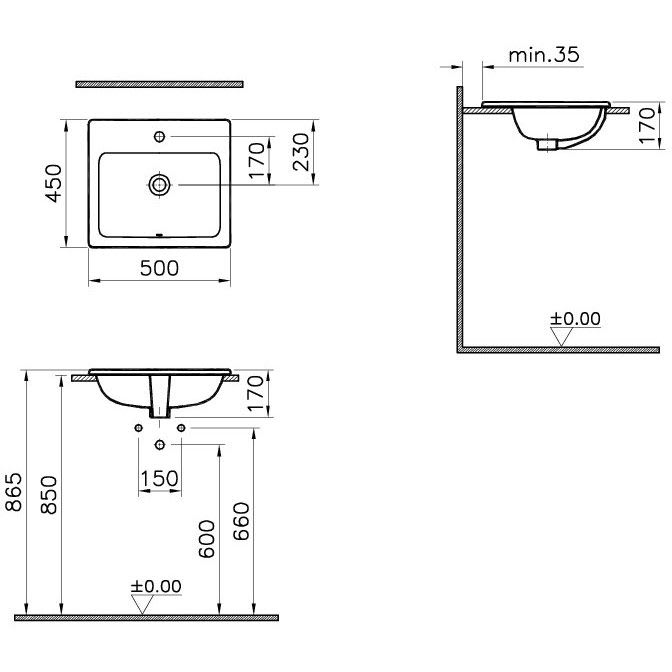 VitrA S20 Einbauwaschtisch 50 x 45 cm