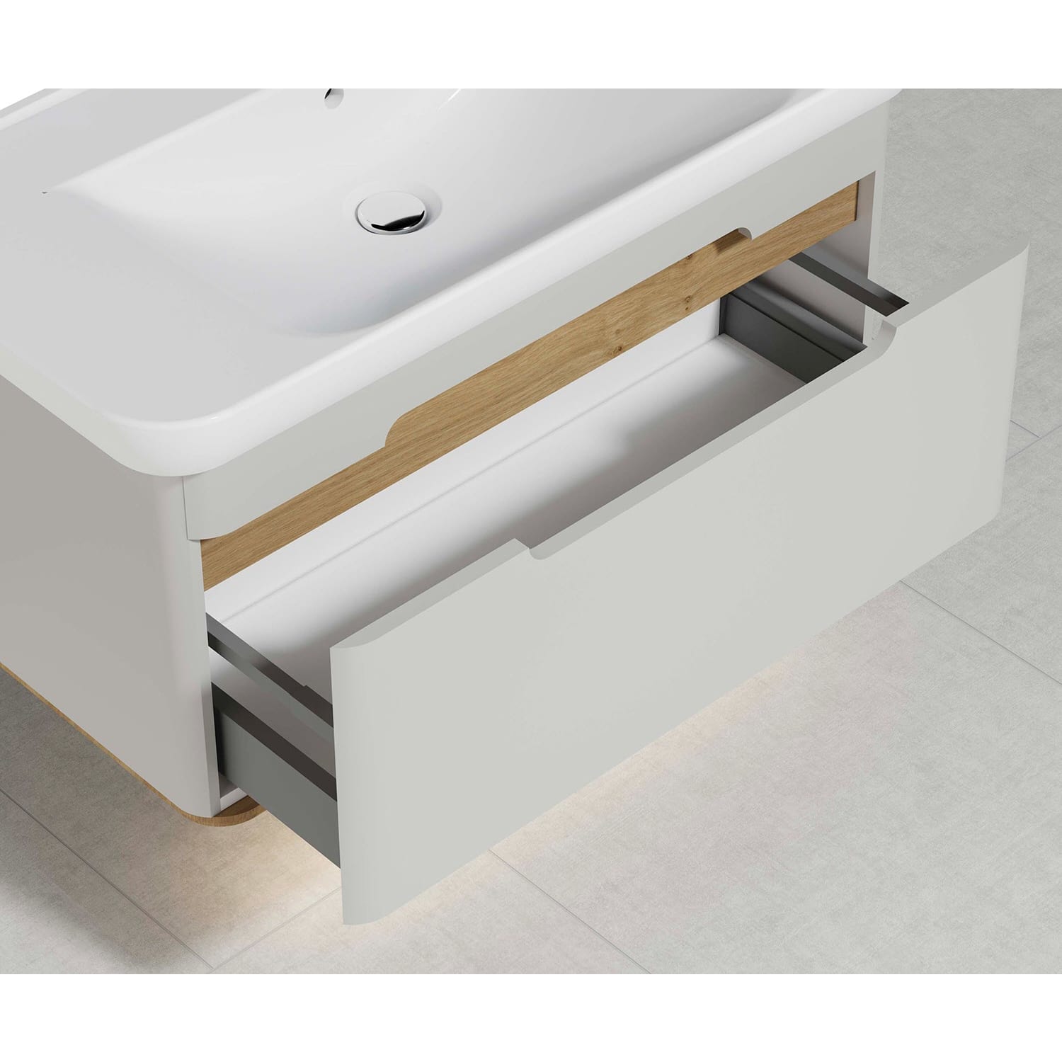 hellgrau matt / eiche natur