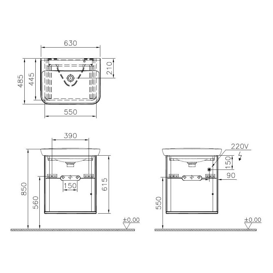 Vitra Sento Waschtischkombination 63 x 48,5 cm mit 2 Auszügen