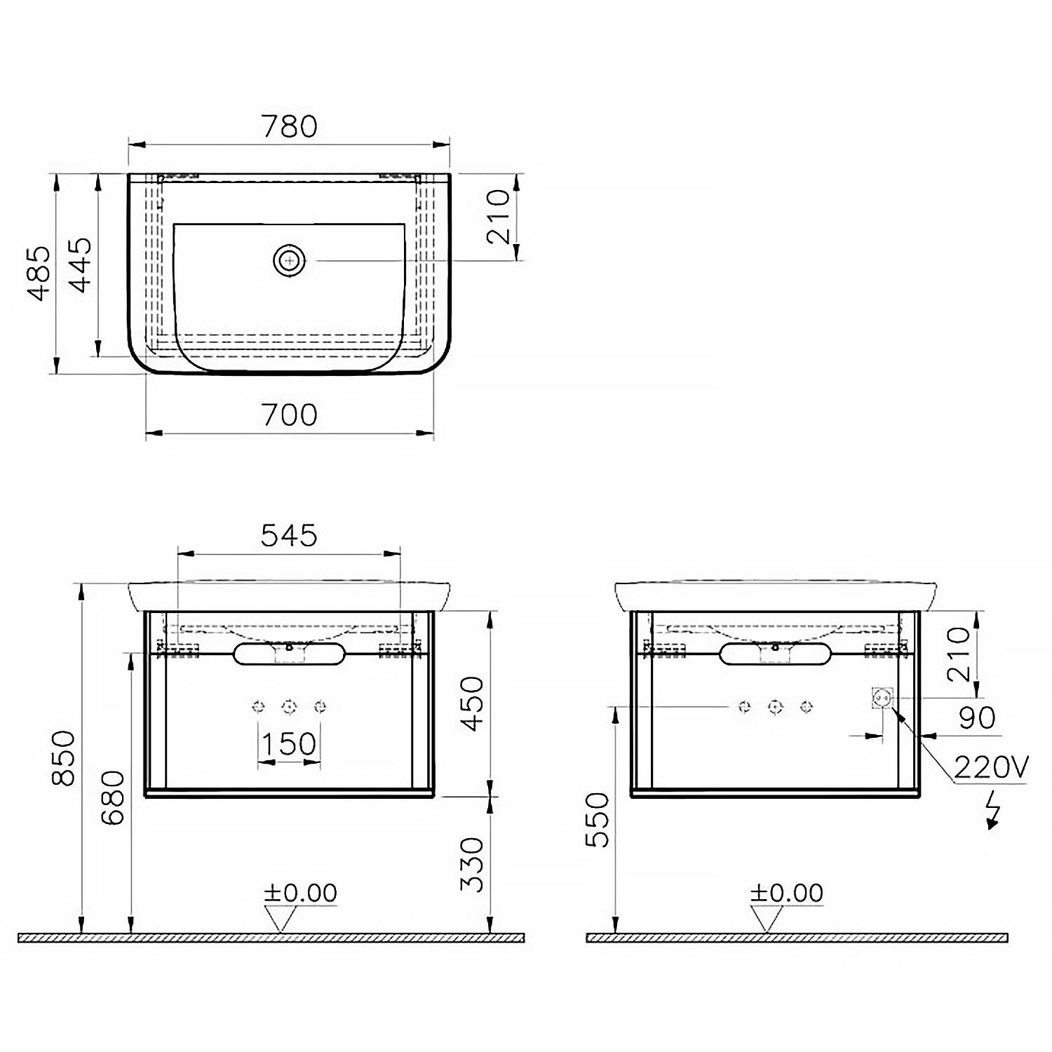Vitra Sento Waschtischkombination 78 x 48,5 cm mit 1 Auszug