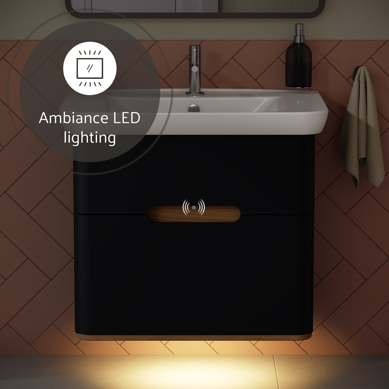 - mit integrierter LED Ambientebeleuchtung an der Möbelunterseite