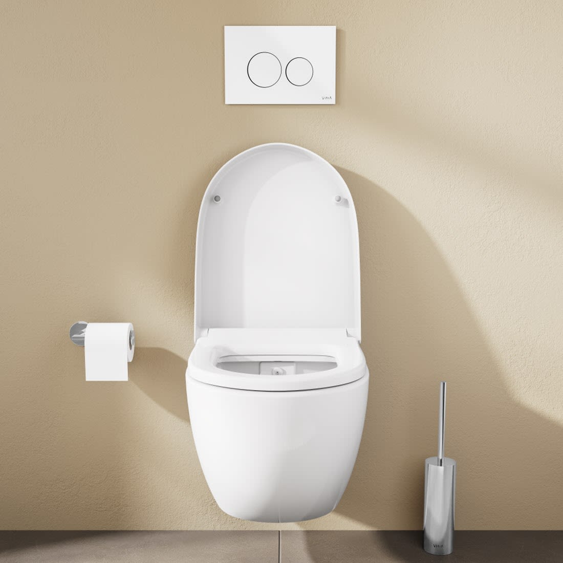 - mit VitrA Flush, einer innovativen Wasserführung mittels keramischem Spülverteiler für perfekte Reinigung ohne Überspritzen