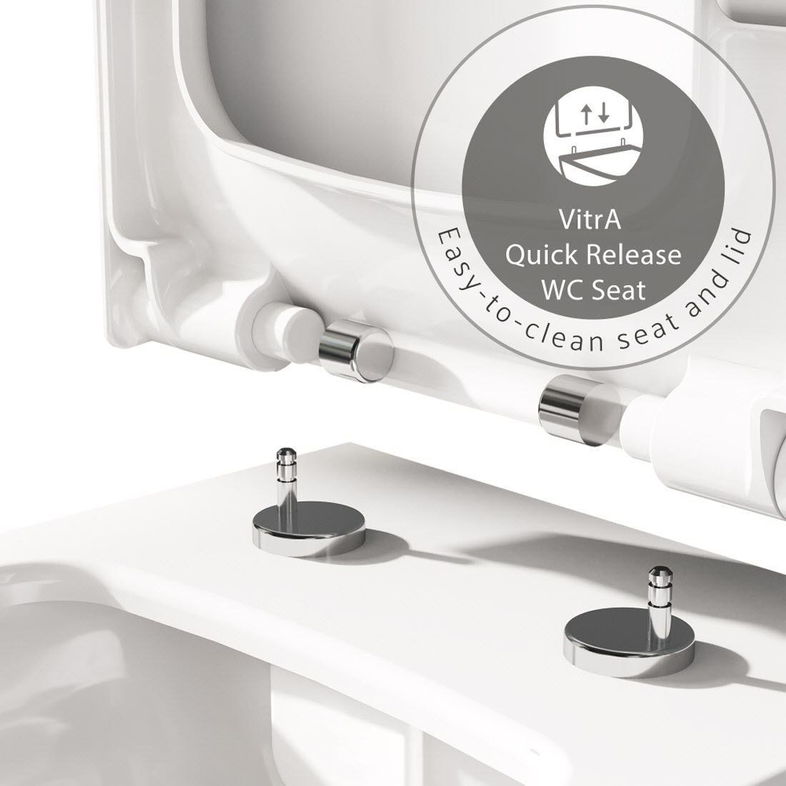 - mit VitrA Flush, einer innovativen Wasserführung mittels keramischem Spülverteiler für perfekte Reinigung ohne Überspritzen
