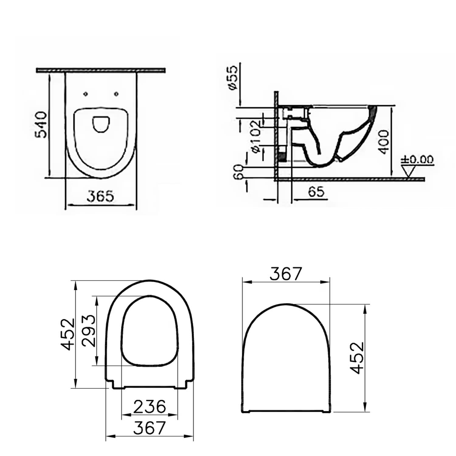 VitrA Sento Wand-WC-Set VitrA Flush 2.0 Tiefspüler ohne Spülrand mit WC-Sitz Slim