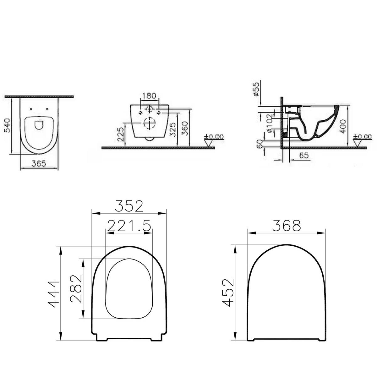 VitrA Sento Wand-WC-Set VitrA Flush 2.0 Tiefspüler ohne Spülrand mit WC-Sitz Slim Wrap