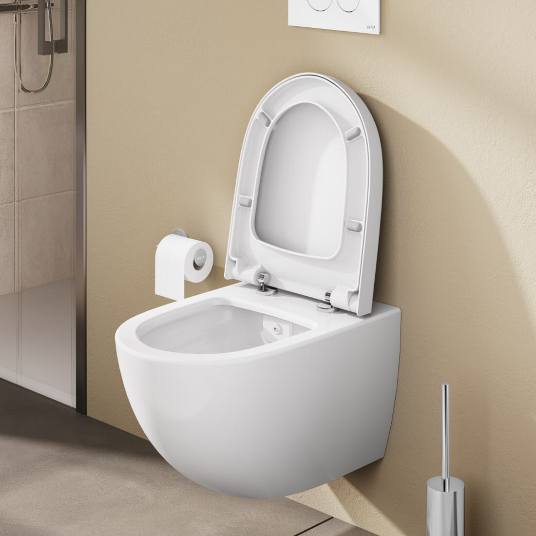 Sento Wand-WCs wie das Modell 7747B003-0075 stehen für modernes, schwebendes Design und alltagstaugliche Hygiene. Die VitrA Flush 2.0-Technologie reduziert Ablagerungen, Schmutz und Keime wirkungsvoll und erleichtert die Reinigung erheblich. Die VitrA Hygiene-Beschichtung sorgt für zusätzlichen Schutz, während der Slim WC-Sitz mit Absenkautomatik Komfort und Eleganz ergänzt. Gemeinsam entsteht ein stilvolles Set, das Funktion, Sauberkeit und zeitlose Ästhetik ideal vereint.