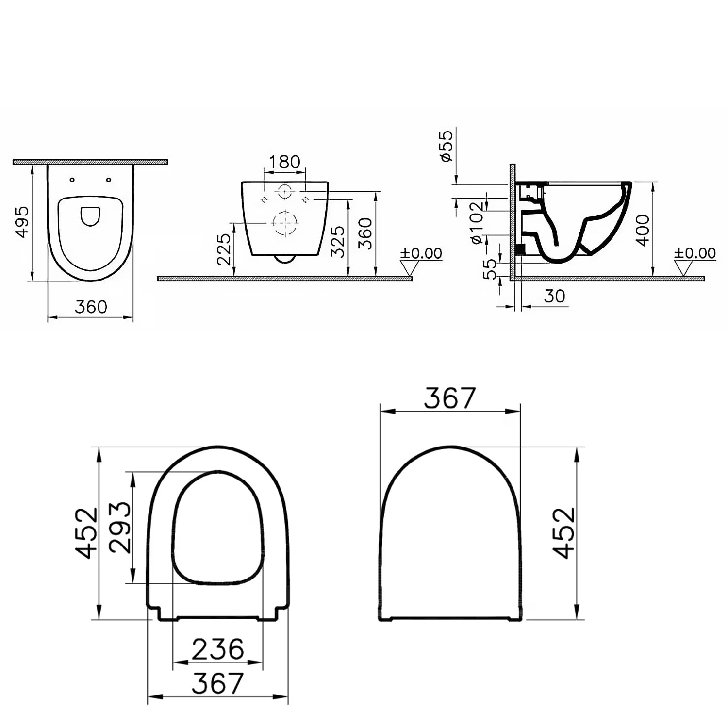 - Montage: wandhängend, verdeckte Befestigung, Sitzhöhe ca. 400 mm