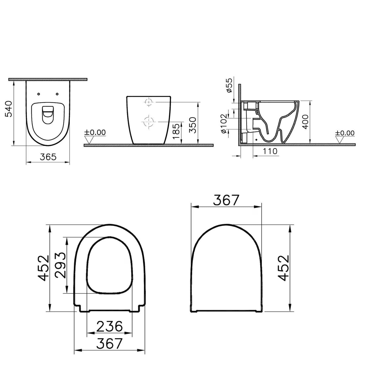 VitrA Sento Stand-WC-Set VitrA Flush 2.0 Tiefspüler ohne Spülrand mit WC-Sitz Slim