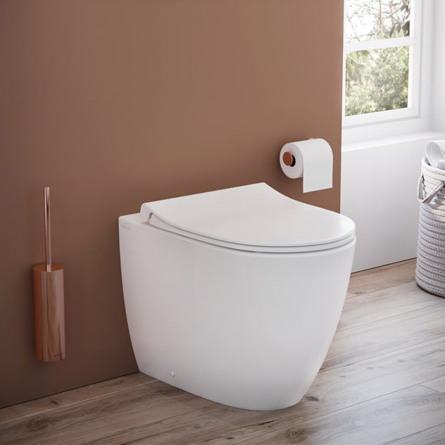 Stand-WCs wie das Modell 7985B403-0075 bieten nicht nur eine klare, zeitlose Optik, sondern auch spürbare Alltagserleichterung. Die Back-to-Wall-Bauweise sorgt für ein harmonisches Gesamtbild und eine platzsparende Montage. Die spülrandlose VitrA Flush 2.0-Technologie reduziert Keime und Schmutzablagerungen effektiv und erleichtert die Reinigung. In Kombination mit dem WC-Sitz mit Absenkautomatik entsteht ein elegantes und langlebiges Set, das Komfort und Hygiene zuverlässig vereint.