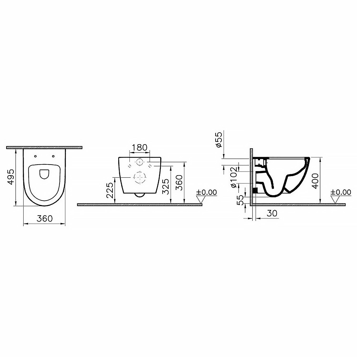 VitrA Sento Wand-WC Compact, VitrA Flush 2.0, Tiefspüler ohne Spülrand