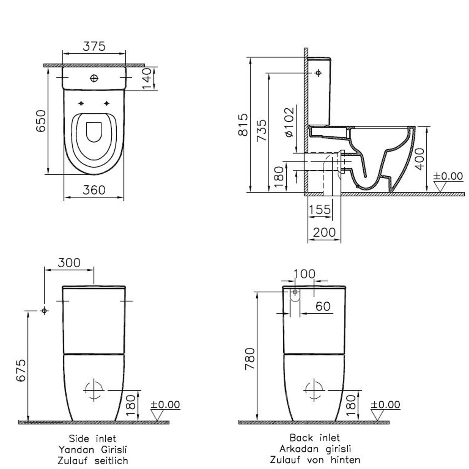 - Wasseranschluss: seitlicher oder rückseitiger Zulauf möglich