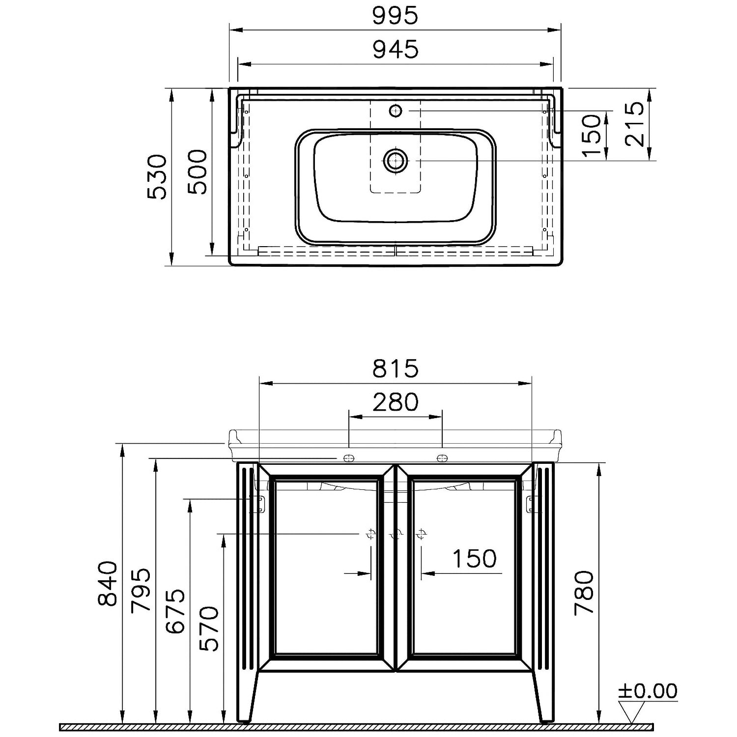 - Maße: 99,5 x 53 cm (BxT)
